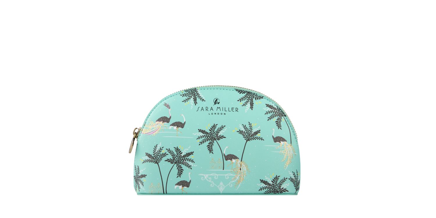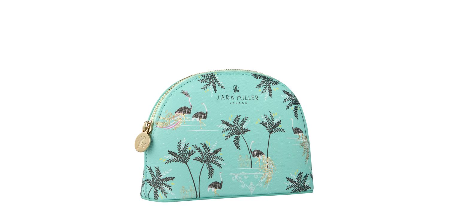 Upgrade your make-up bag with our elegant and compact cosmetic bag featuring the playful Savannah print. Crafted from vegan leather in the Mint Ostrich & Palms design, it is the perfect size for make-up essentials. Crafted with zip closure, bespoke Sara Miller zip-pull and lined with wipe-clean fabric. The beautiful design brings luxury and style to the bathroom or dressing table and makes a perfect gift. Enter the enchanting world of Sara Miller London’s beauty collection inspired by a love of travel. Sophisticated cosmetic bags complement a bath and body range, blended with a fusion of exotic fragrances and ingredients from all parts of the globe to transport you from East to West on a sensual journey of discovery.