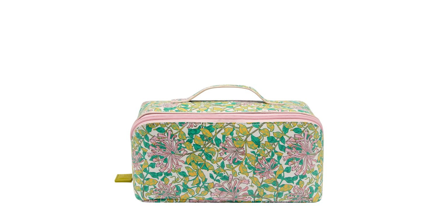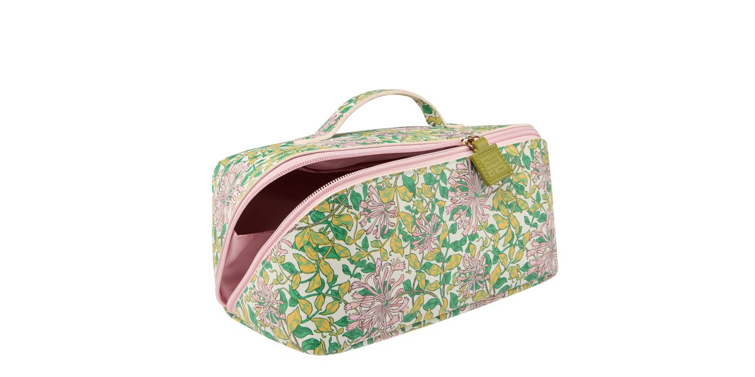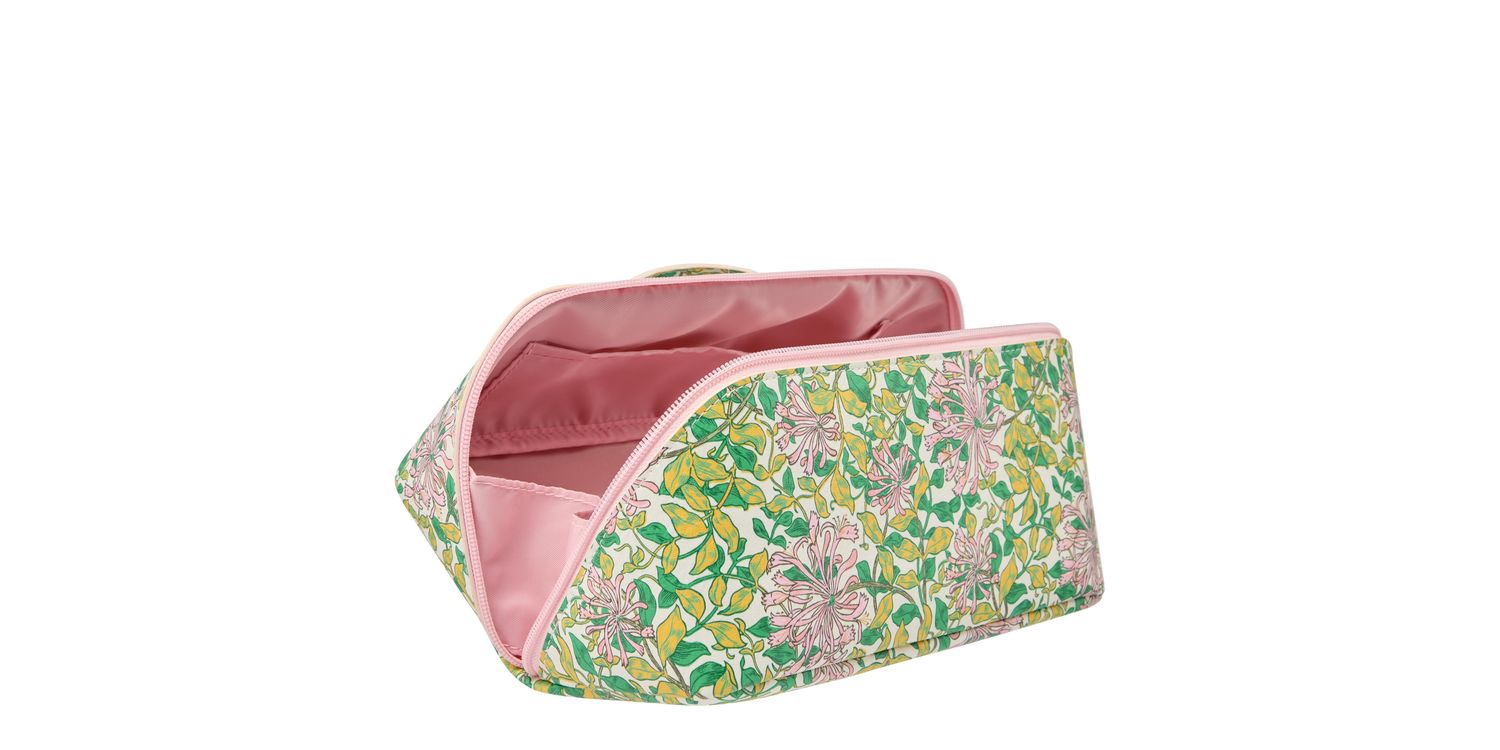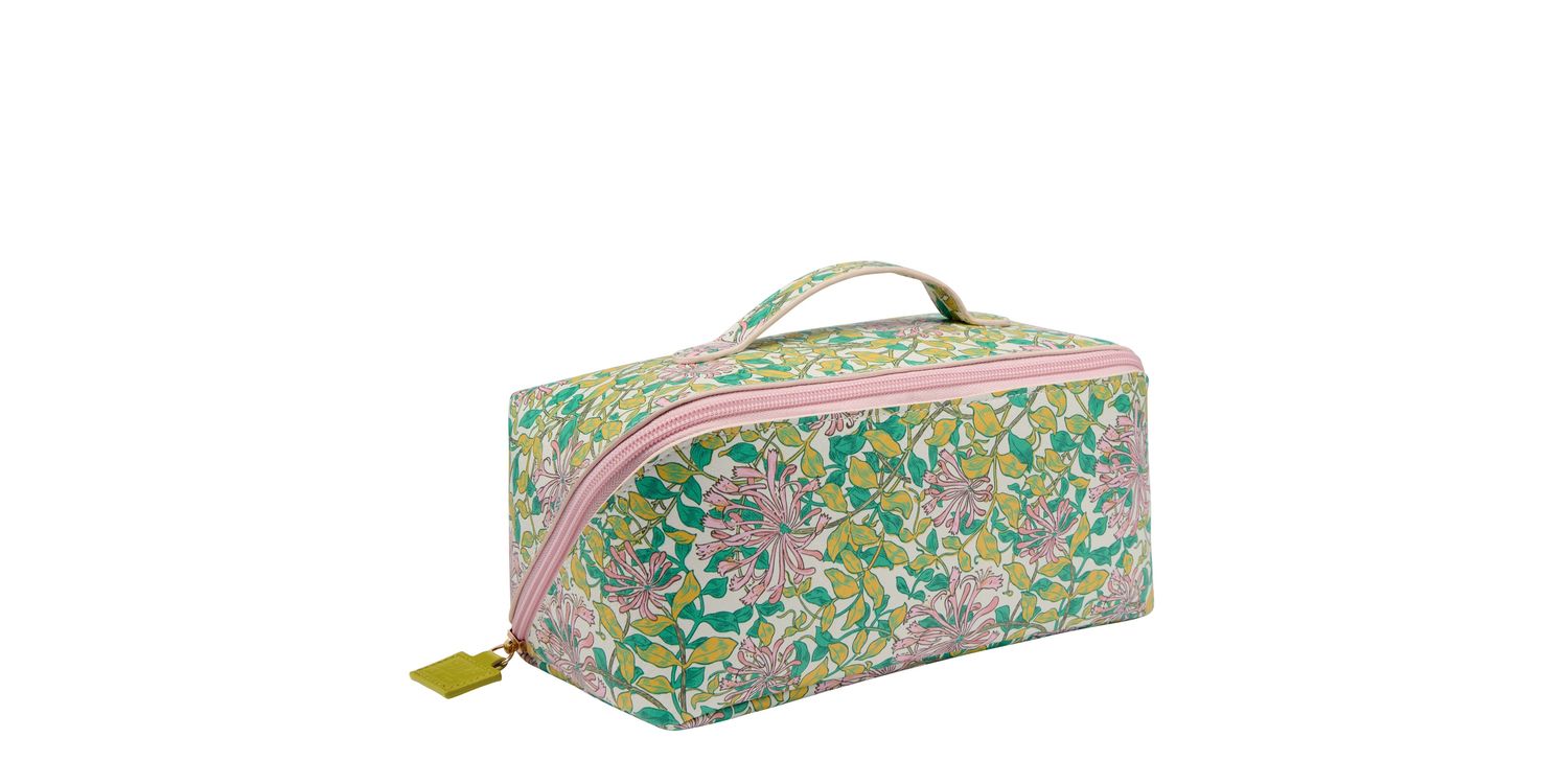 Elevate your travel beauty storage with this useful and beautiful, Honeysuckle print wash bag with zip. Designed to open flat, the shape is indispensable for stylish travel and practical beauty storage. A perfect gift for the modern homemaker. This elegant wash bag with handle is made from vegan leather printed with soy based inks and has a recycled fabric lining. Finished with a William Morris At Home embossed zip pull. “The true secret of happiness lies in taking a genuine interest in all the details of daily life,” William Morris. William Morris Gallery is the only public museum in the World dedicated to the inspiring Victorian designer. The gallery is a not-for-profit organisation, based in his childhood home in Walthamstow. Every design used in William Morris At Home comes from the William Morris Gallery archives, the original home of William Morris.