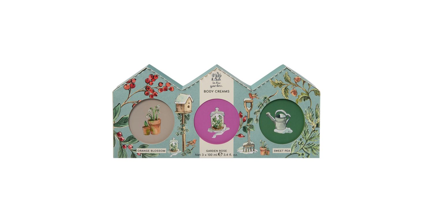 Enter our winter garden with this perfect gardener’s gift of three intensive body creams packed with skin-loving ingredients. With three assorted fragrances of Rhubarb Mint, Garden Rose and Sweet Pea to put the spring back into winter. Perfect for dry winter skin, our body creams are enriched with skincare heroes of shea butter, vitamin E, glycerine and pro-Vitamin B5. Blended with essential oils of lime and tea tree, and elderflower, blackberry and rhubarb extracts. Vegan body treats lovingly formulated to leave skin feeling soft.