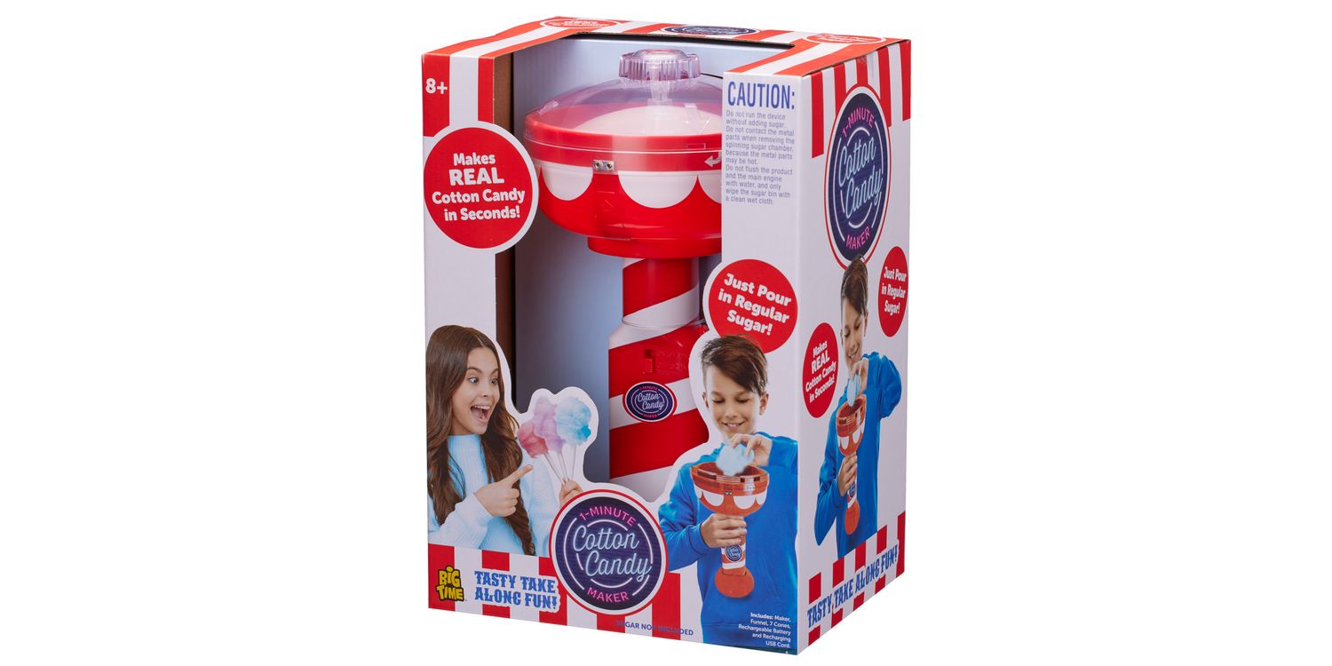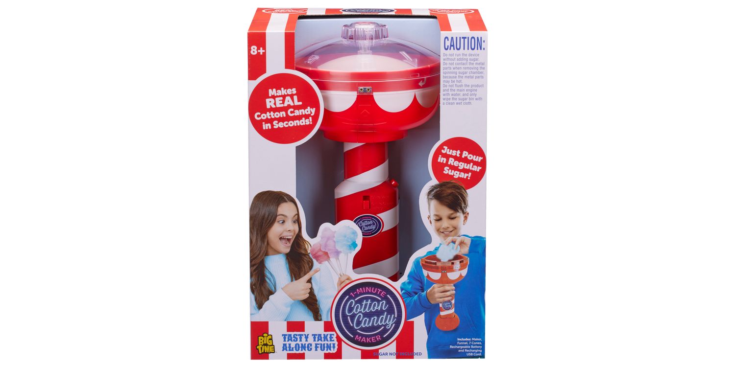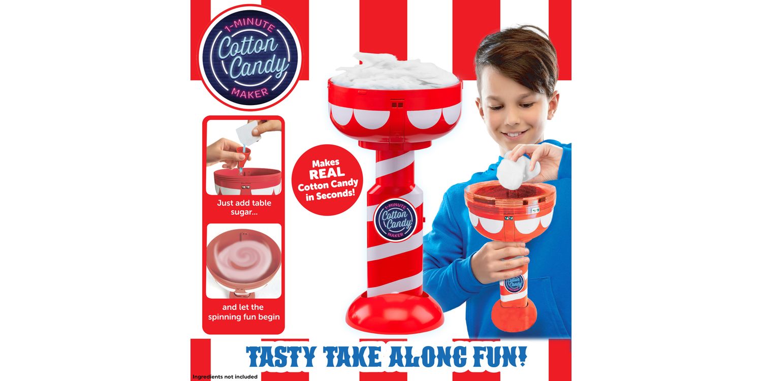 Cotton Candy Maker Enjoy the taste of the funfair at home with the Cotton Candy Maker. Make delicious bite sized pieces of candy floss – simply add table sugar (not included) and let the fun begin. The handheld unit is simple to operate and includes rechargeable batteries. This portable candyfloss maker is the perfect size to take to parties and sleepovers!