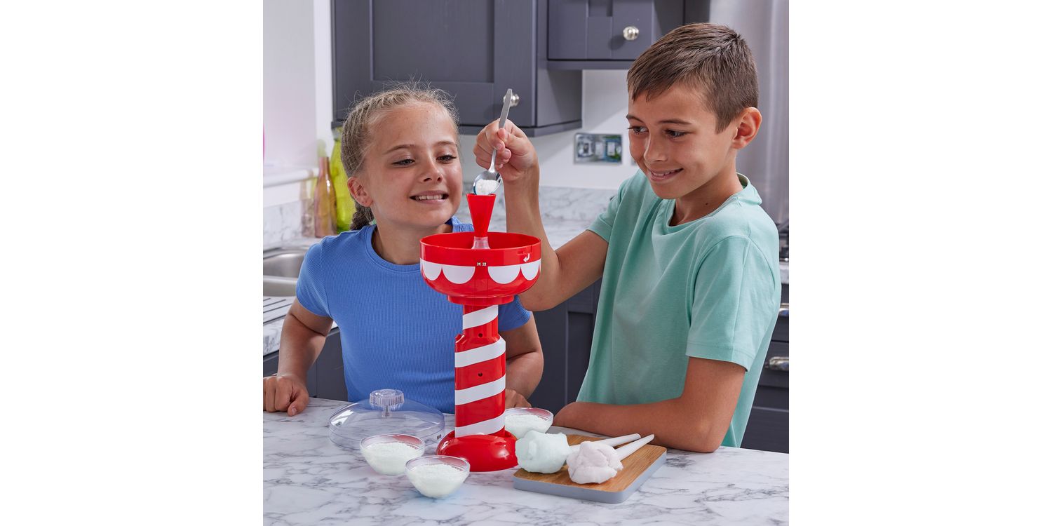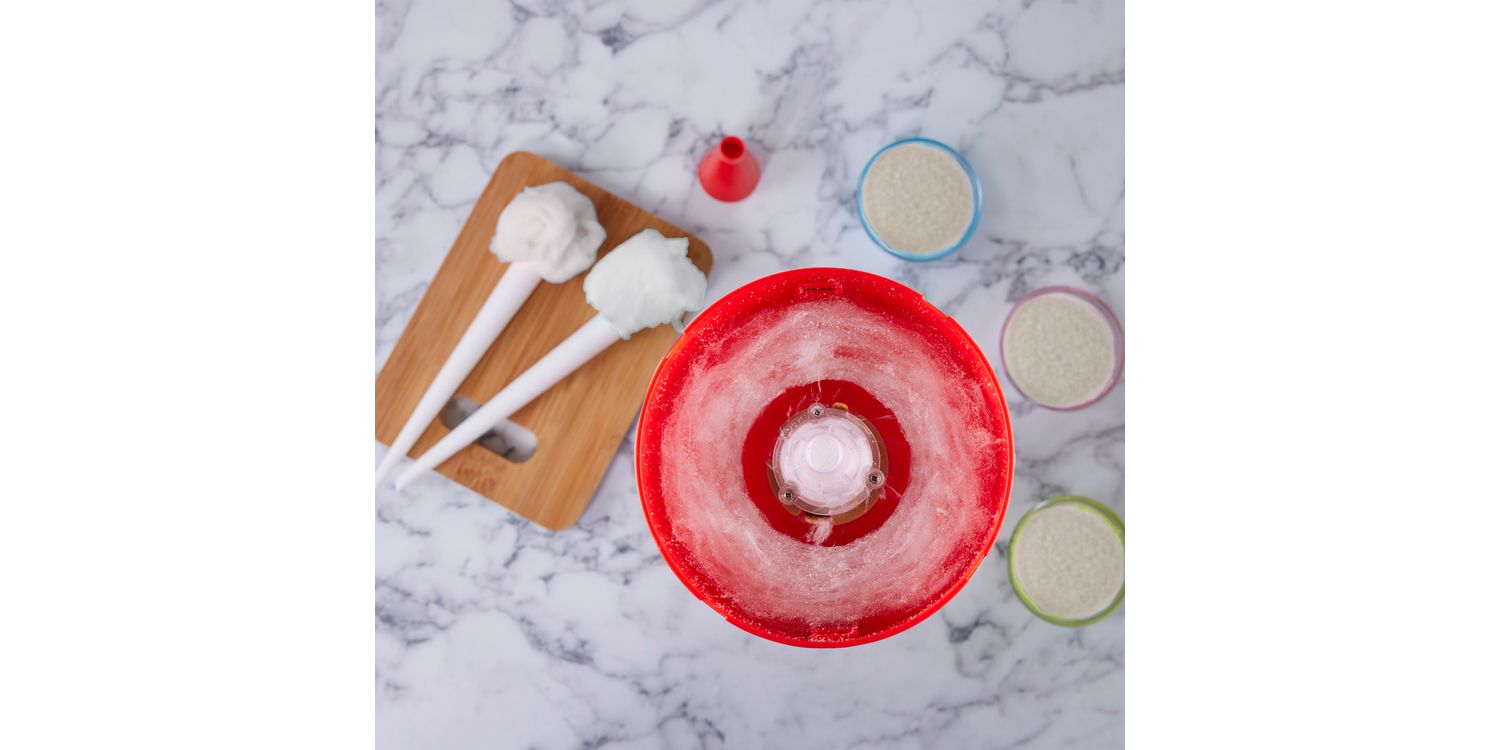 SIMPLE TO USE: The Cotton Candy Maker is so easy to use. Simply attach the funnel to the sugar chamber, add your sugar, twist the lid then press to spin! In just a minute you can enjoy a fresh bite sized piece of cotton candy. To produce more simply press again to run another cycle! For best results all you need to use is table sugar (not included) – no special ingredients required!