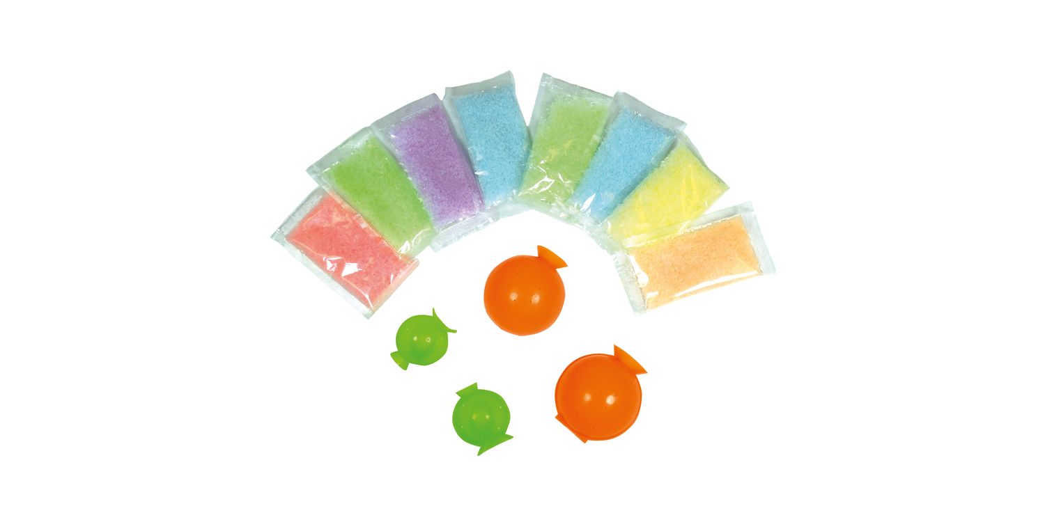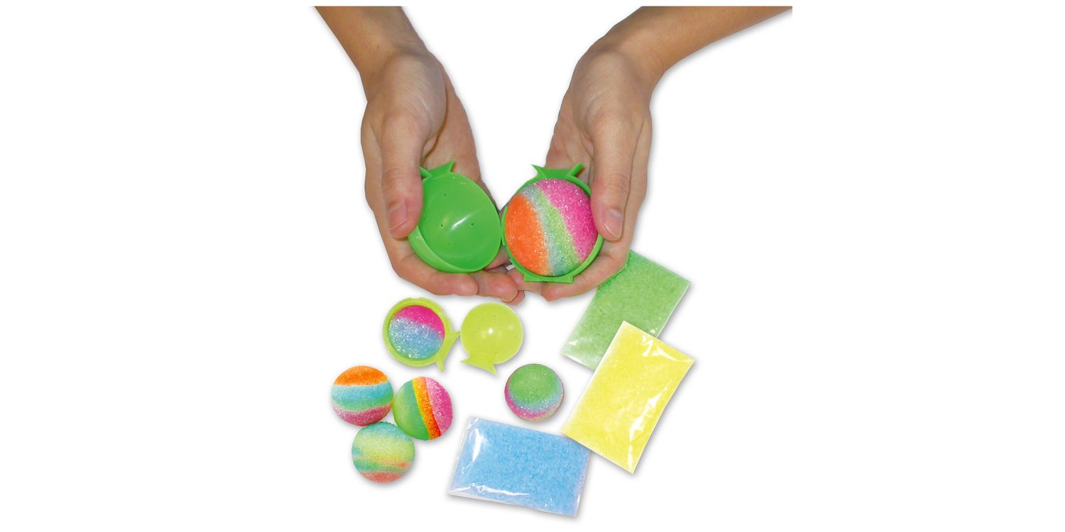 Create cool bouncy balls from the coloured crystals! Simply layer up the crystals and place in water for a few minutes. Makes 2 large balls or 8 small ones.