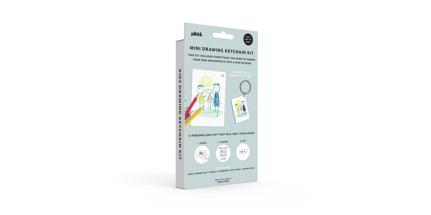 So much fun and easy to make with the kids, simply have fun creating a drawing using the pencils included, then pop it into the oven for just 1-2 mins and watch it shrink to a quarter of the size before your very eyes to a small and rigid keychain, making the ultimate personalised gift.