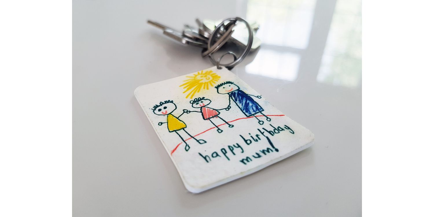 This clever craft kit contains everything you need to create a mini key chain of your kids' drawings.