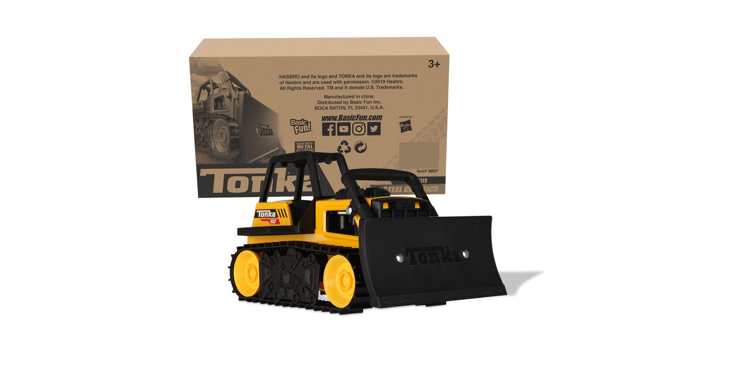 The Tonka Steel Classics Bulldozer is ready to demolish and clear away anything in its path! Move dirt, sand and gravel with the workable blade and take control of any job site! This bulldozer is built Tonka tough with real steel!