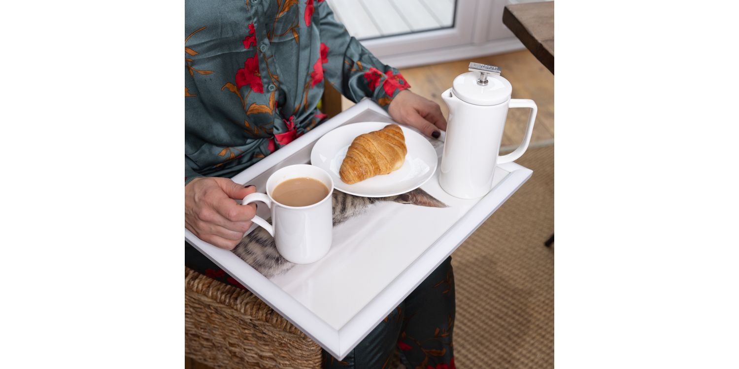 Sit back and settle down to enjoy dinner in front of the TV, putting together a jigsaw puzzle, or sketching your latest masterpiece. The Creative Tops 'Kitten' Cushioned Bean Bag Lap Tray provides the perfect stable base for these activities. Backed by a soft black bean bag, this cushioned tray moulds to the shape of your legs. This allows it to rest steadily and comfortably on your lap, so there's less chance of your plate, pad or even your laptop sliding around on its surface. It's not just practical though. This large dinner tray's design features a photo-print of a little tiger-striped kitten taking a nap on a bed. Framed by a gorgeous wood-effect border, it makes an adorable addition to any kitchen or dining table - even when it's not in use.