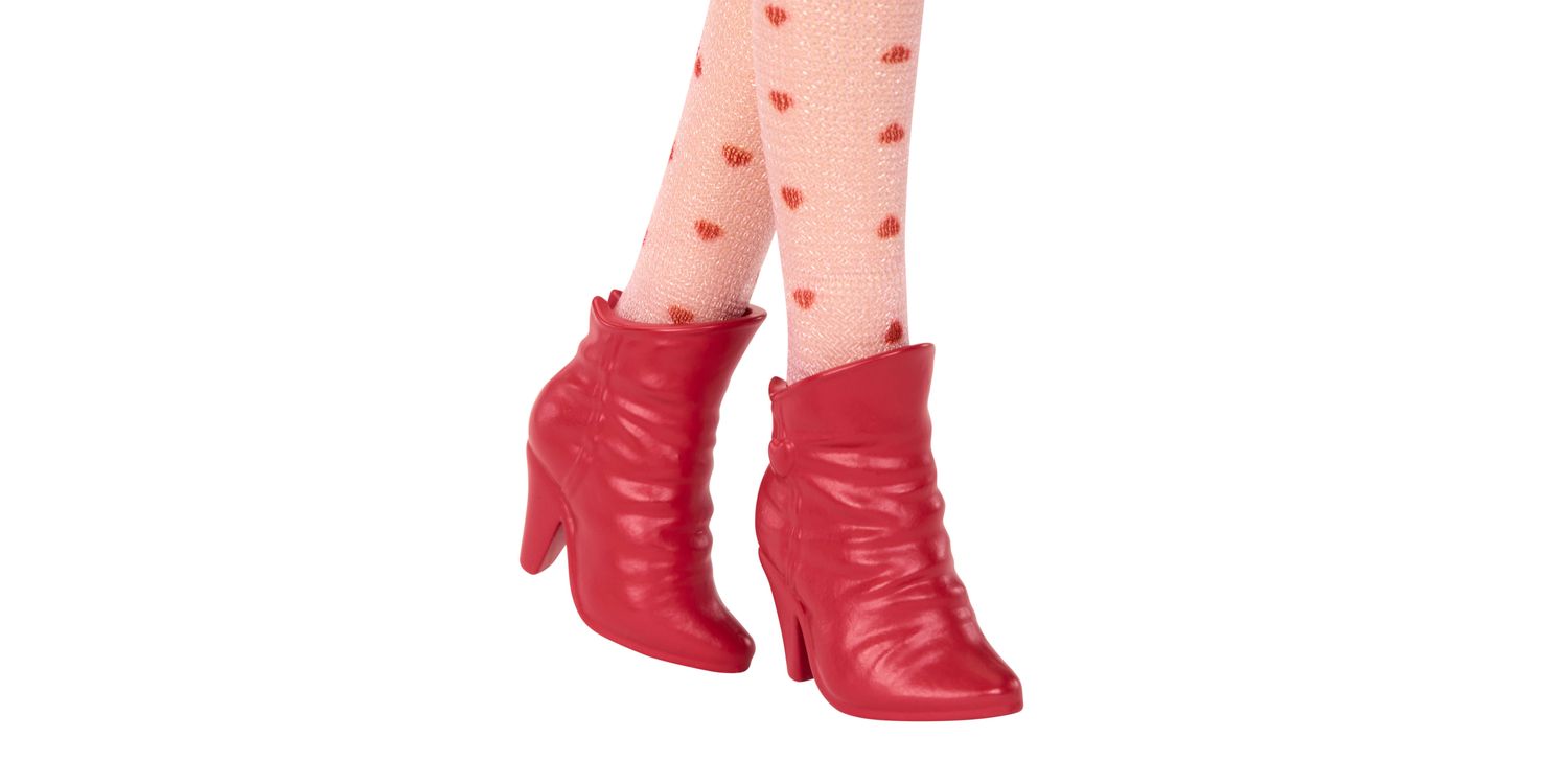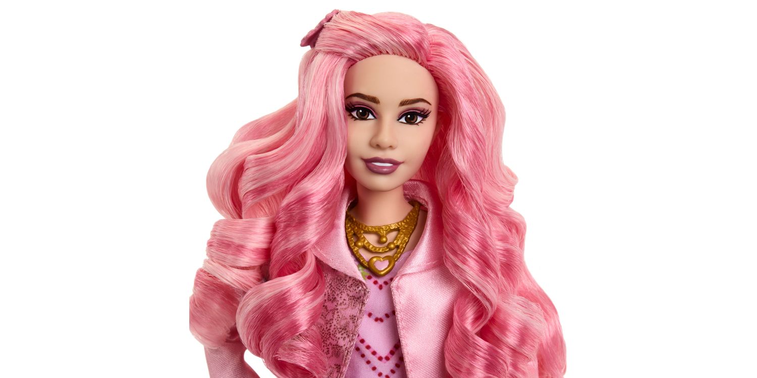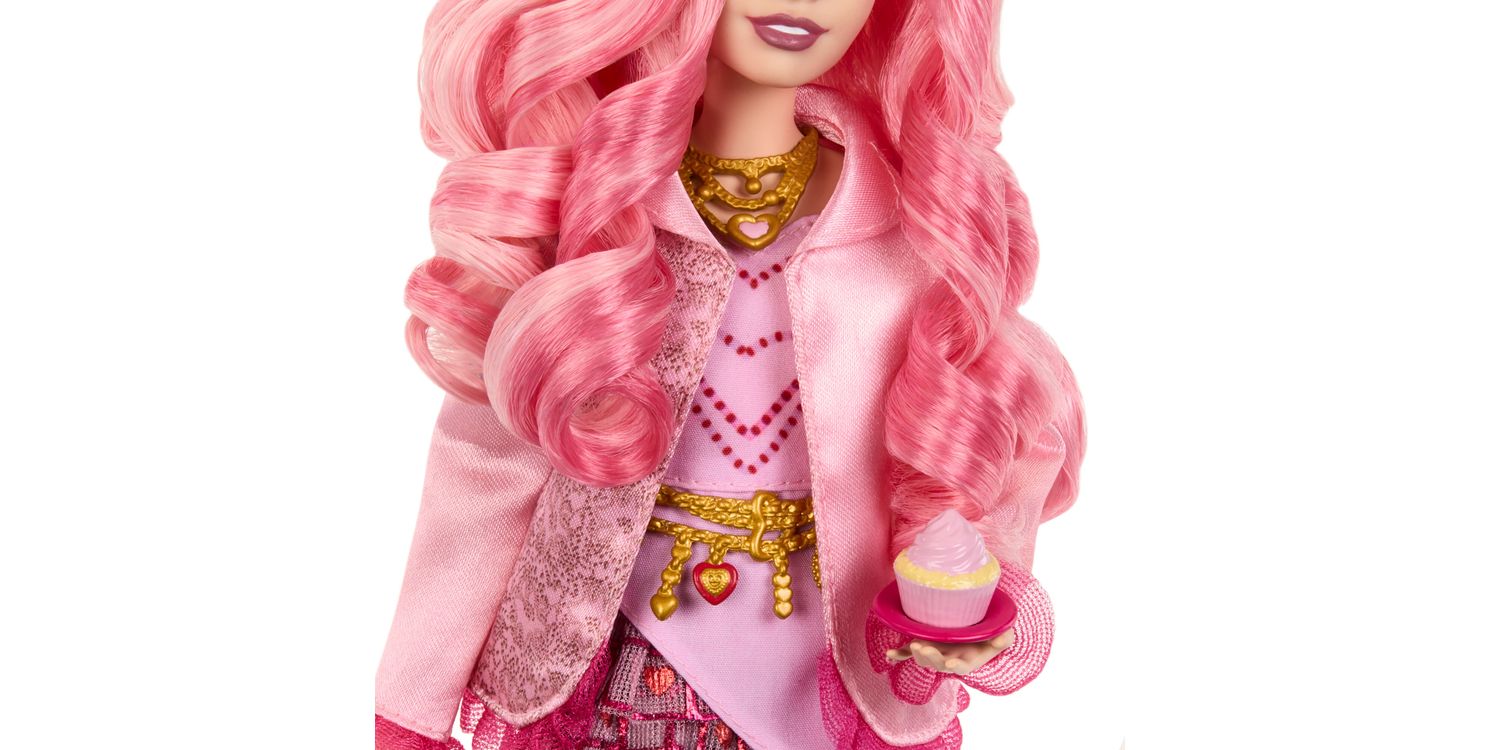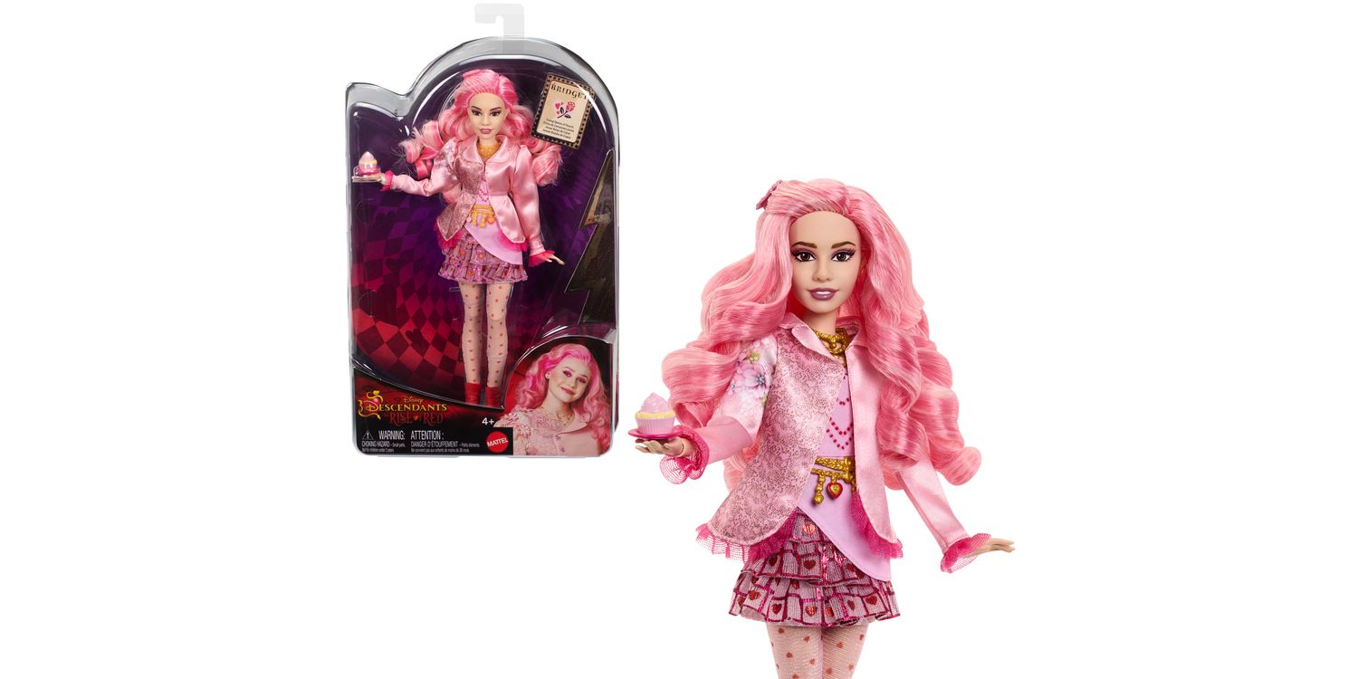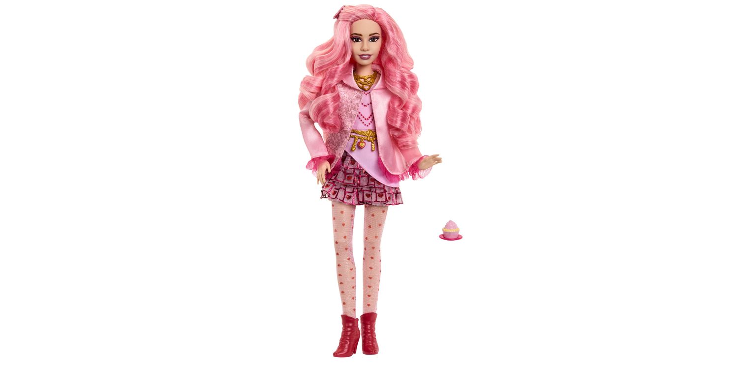 Spread bubbly positivity with this doll of Bridget, Young Queen of Hearts, from Disney Descendants: The Rise of Red! With her soft pink waves and charming outfit, this fashion doll looks just like the sweetheart she is in the movie. She bends at the arms, elbows, wrists and knees for sugary sweet poses with her cupcake accessory. Makes a great gift for fans who will want to collect them all! Each sold separately, subject to availability. Doll cannot stand alone. Colours and decorations may vary.