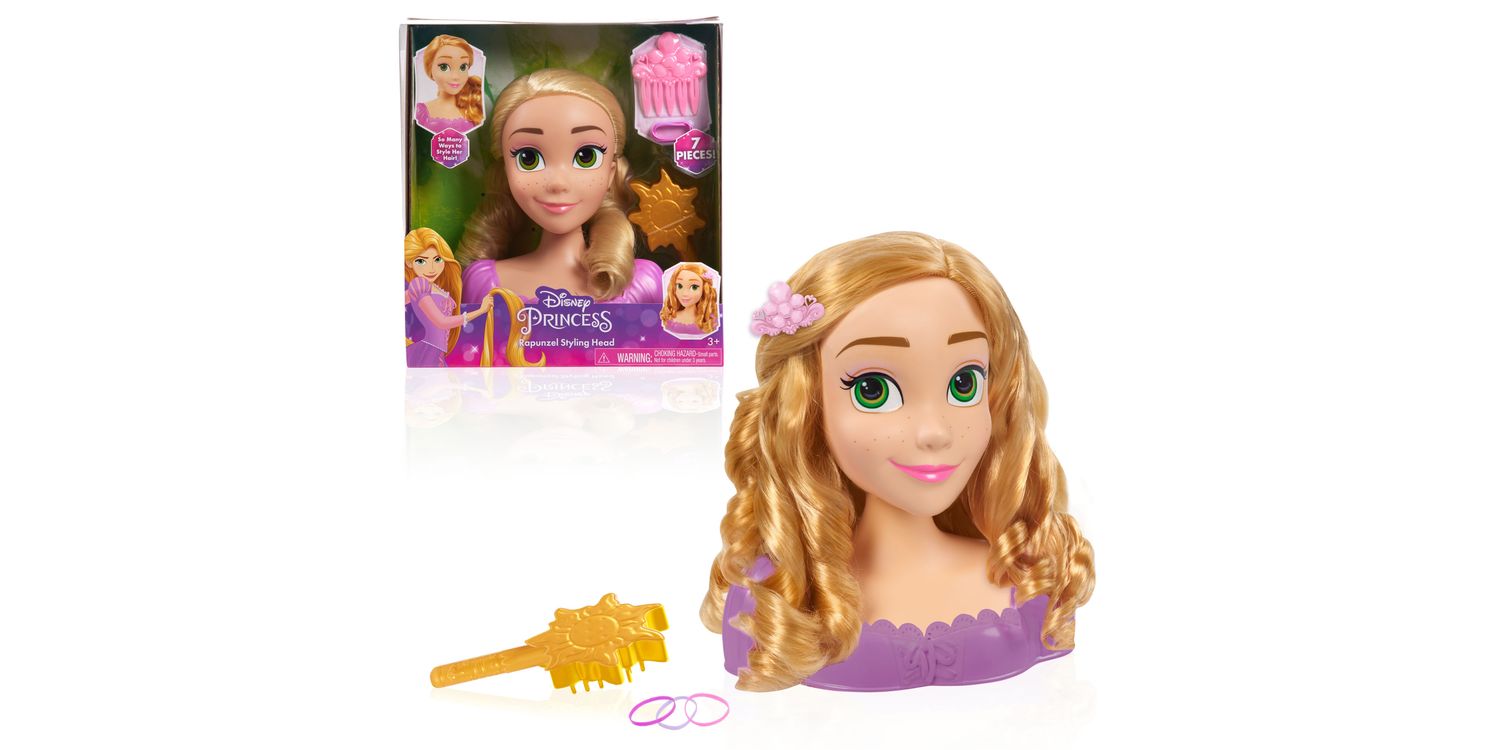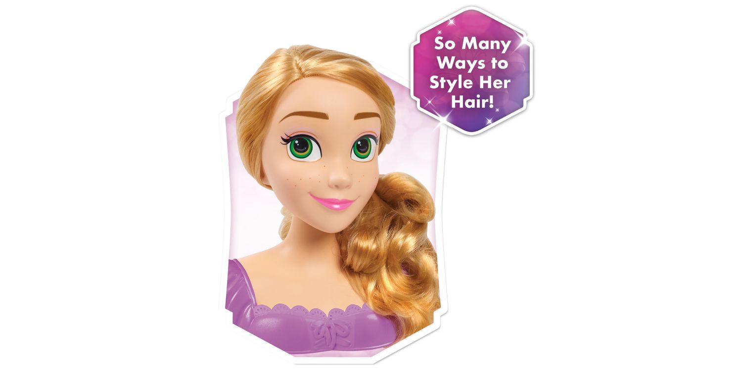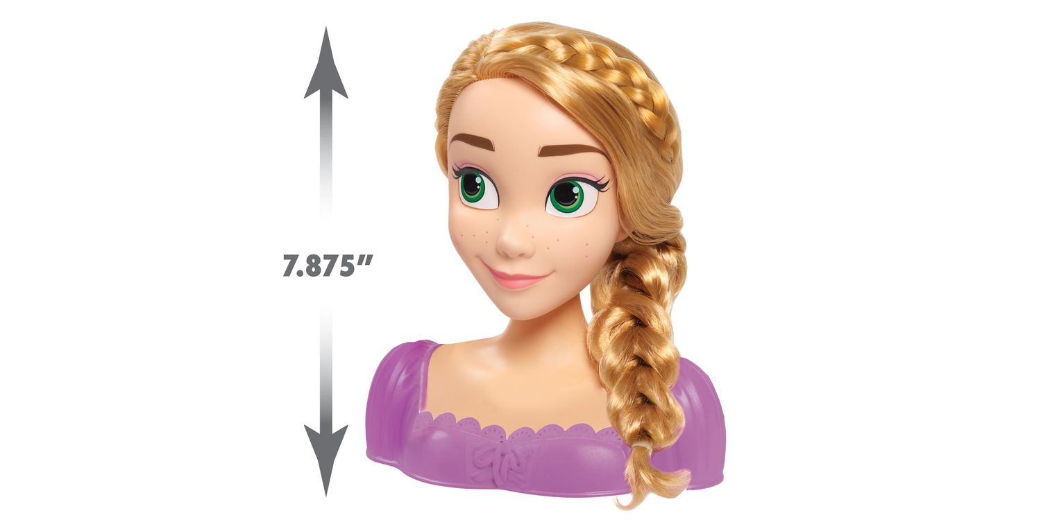 Get ready to let creativity shine with the Disney Princess Rapunzel Styling Head. Perfect for hours of pretend play, this 8-inch styling head comes with 2 styling tools for Rapunzel’s long, blonde hair. The decorative comb doubles as a hair pick and pretty accessory!
