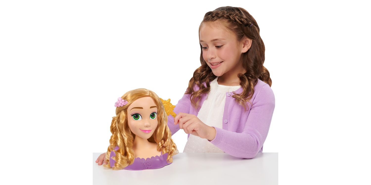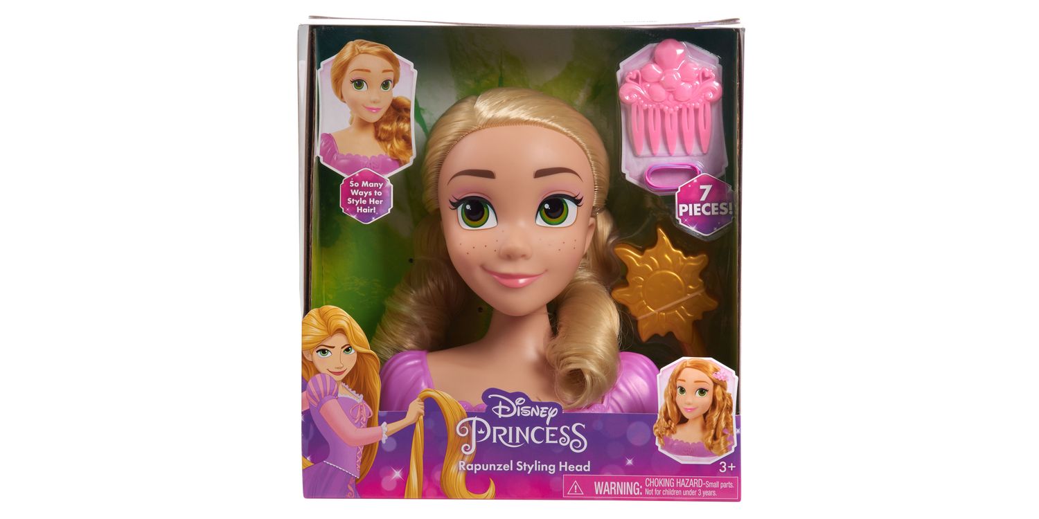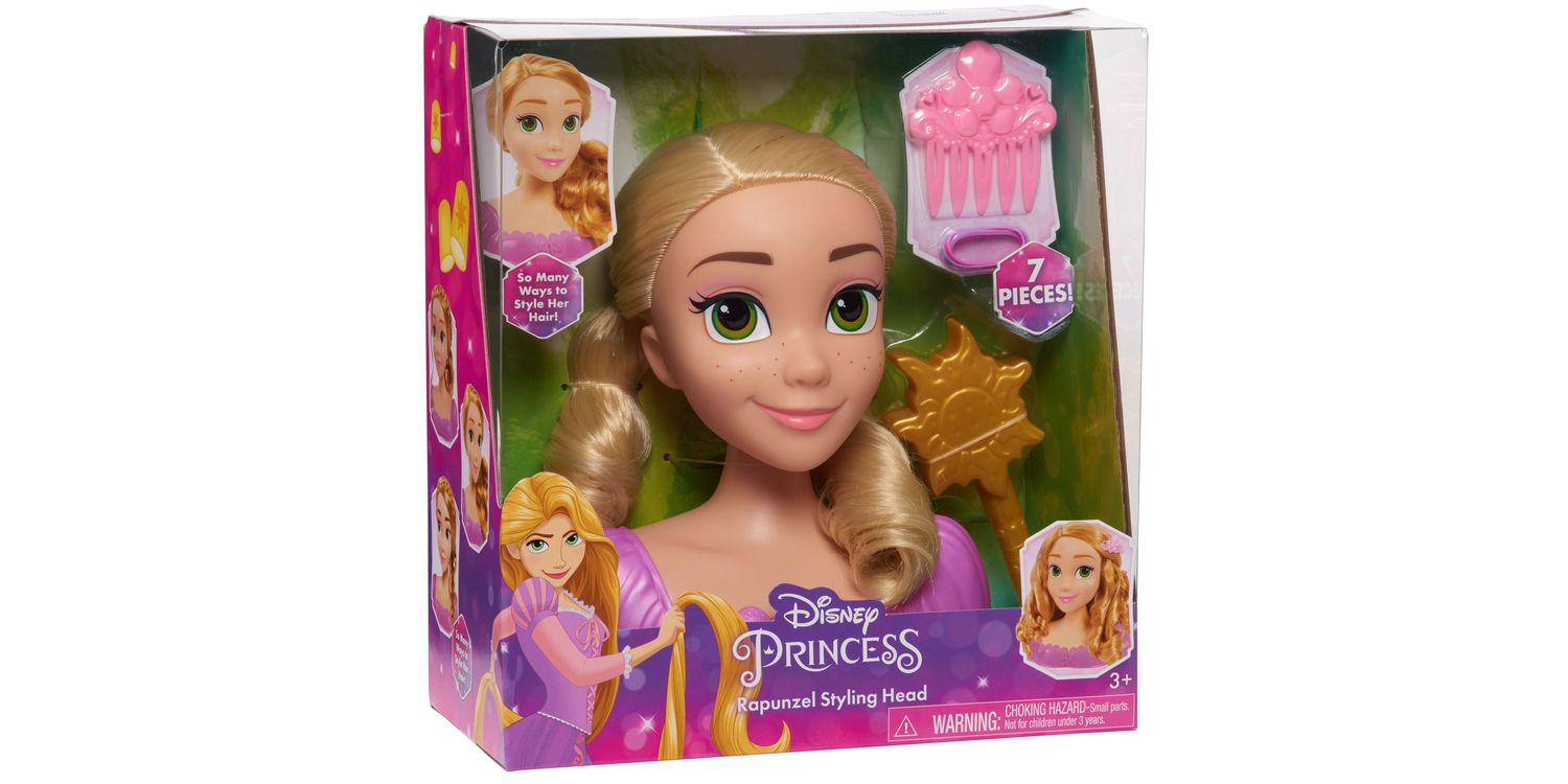 Get ready to let creativity shine with the Disney Princess Rapunzel Styling Head. Perfect for hours of pretend play, this 8-inch styling head comes with 2 styling tools for Rapunzel’s long, blonde hair. The decorative comb doubles as a hair pick and pretty accessory!