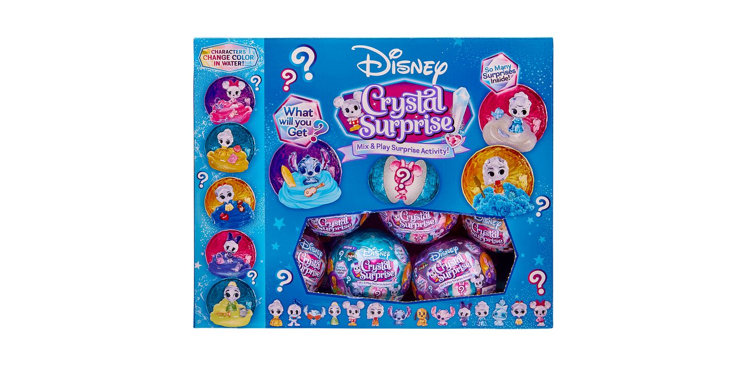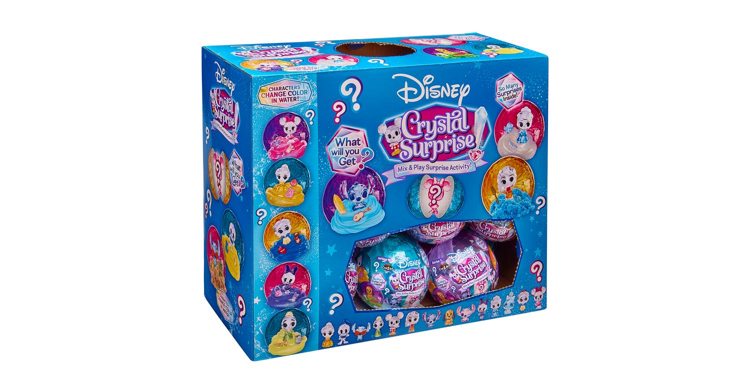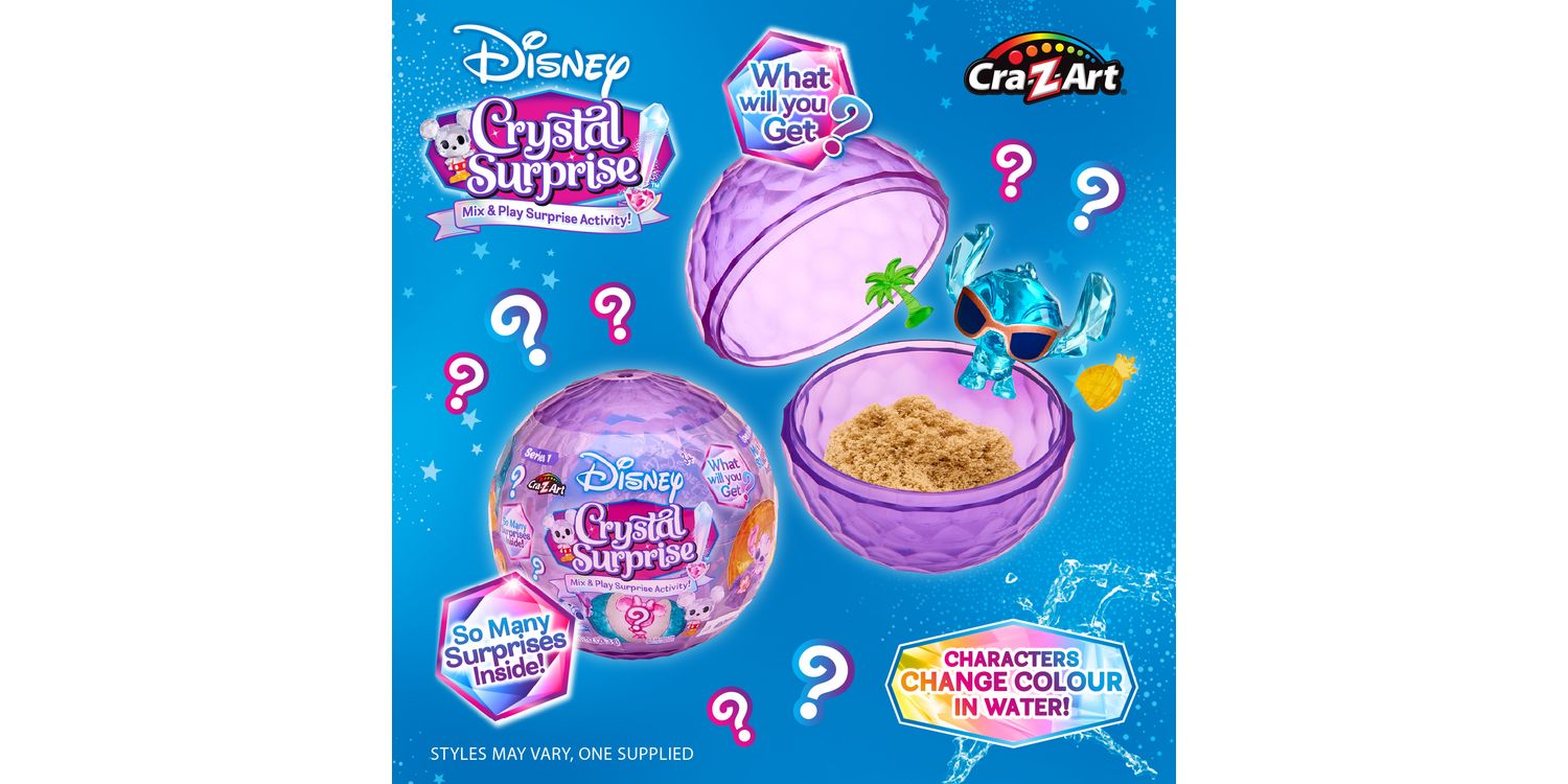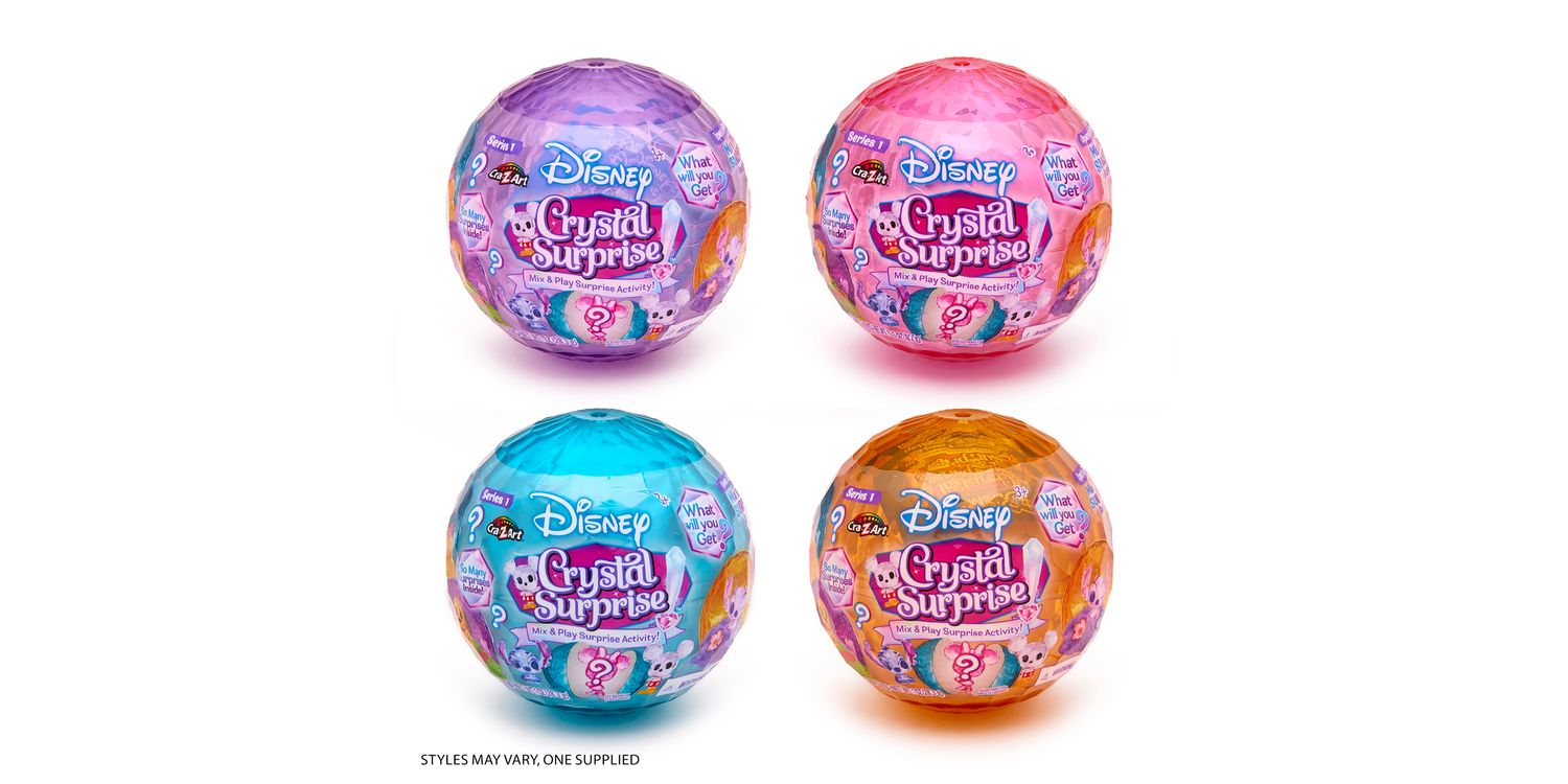 DISNEY CRYSTAL SURPRISE Disney Crystal Surprise is a brand-new surprise collectable figure and activity all in one! There is a collectable element, activity element and a colour-change element all in 1 awesome ball. Disney Crystal Surprise Mini Figure comes packed in a beautiful, faceted ball packed with a blind bag full with a Crystal Disney mini figure, 2 coordinating accessories and a Cra-Z-Compound! There is so much fun and activity packed into this Disney Surprise Ball. This enchanting toy brings a sprinkle of Disney magic into playtime.