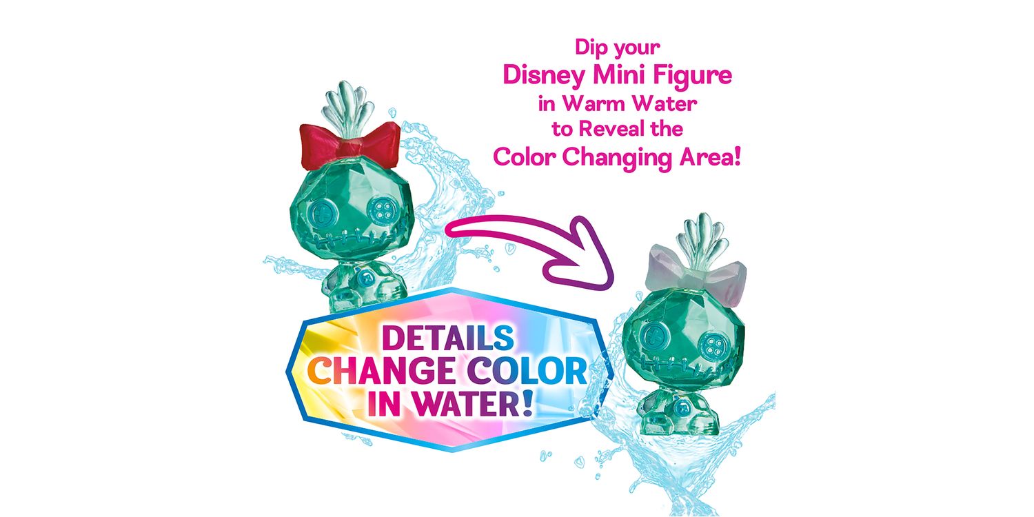COLOUR CHANGE Each mini crystal character has a dazzling colour change feature that delights and amazes. Just dip your crystal mini figure into warm water and right before your eyes you'll see a colour area on the figure will turn to a matte finish. A few minutes later the area will turn back to its original colour.