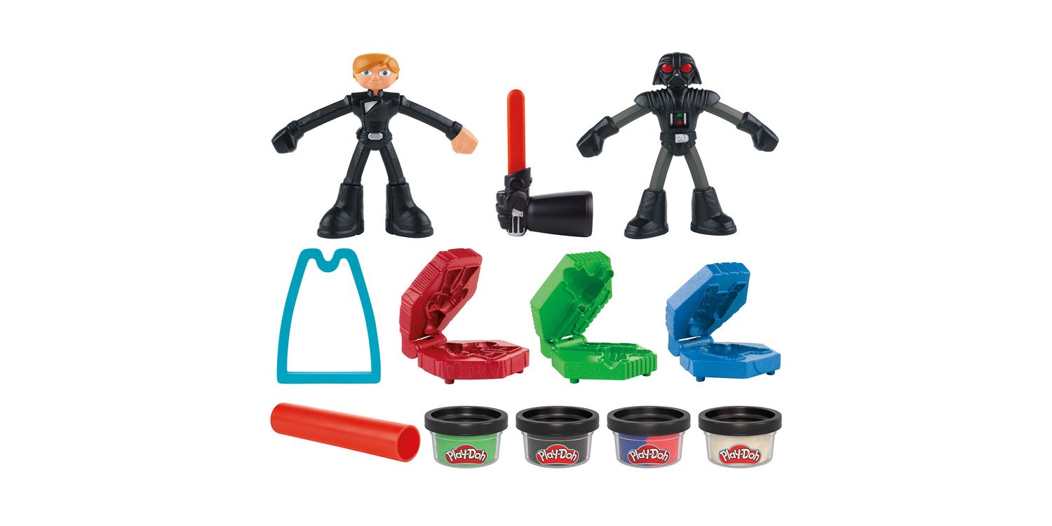 • Includes Luke Skywalker figure, Darth Vader figure, Lightsaber accessory, cape cutter, 3 book-mould display stands, and 4 cans of Play-Doh Brand Modelling Compound (net wt. 4 oz/113 g).