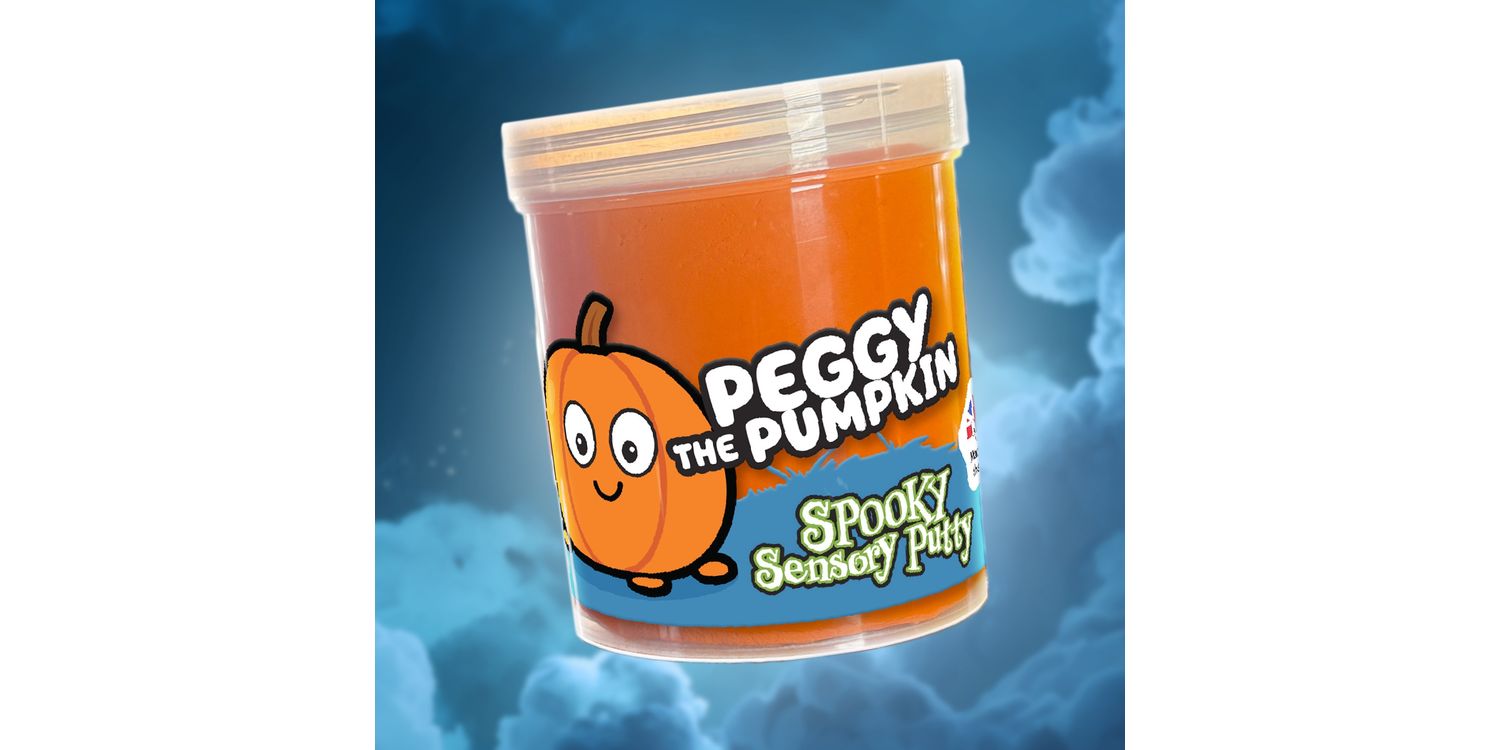 A vibrant orange sensory putty topped with spooky clay sprinkles, perfect for squishing and shaping into ghoulish creations.