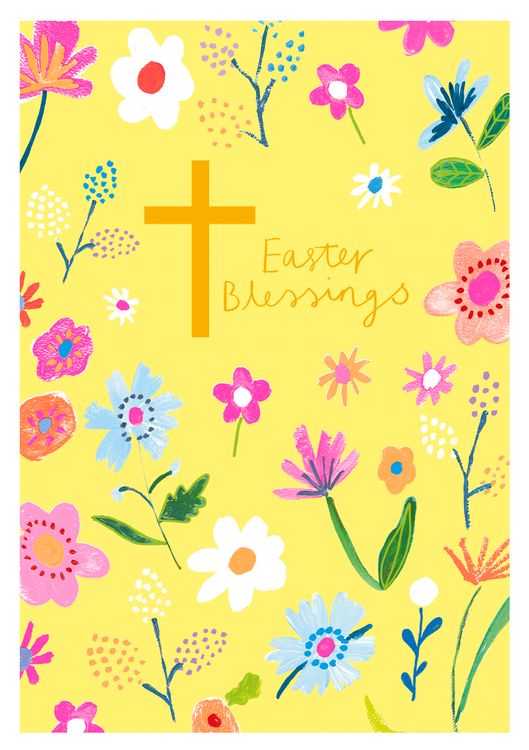 Easter Card - Floral Cross Easter Blessings