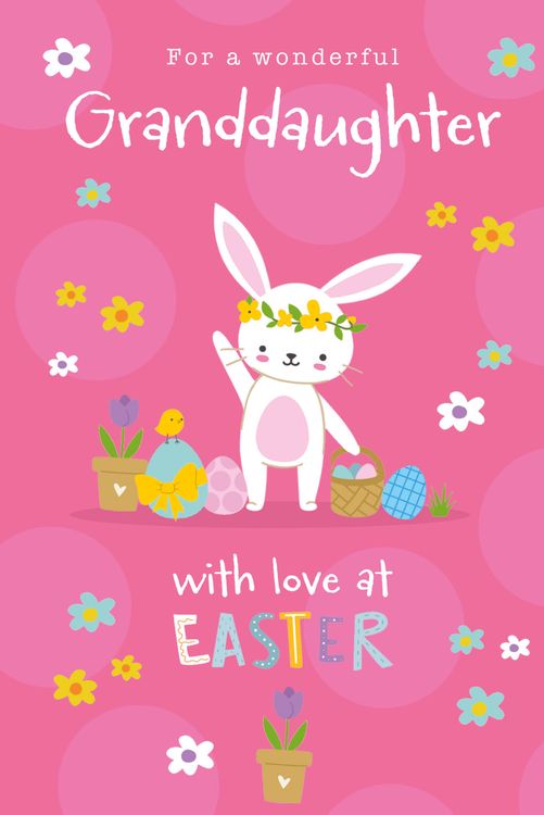 Easter Card - Girl Bunny Basket And Bunting Tulips