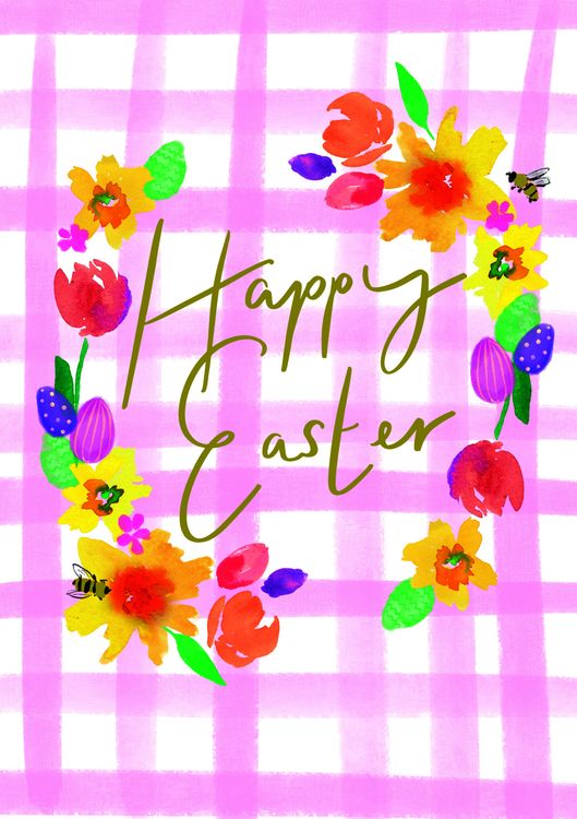 Easter Card - Happy Easter Gingham Floral