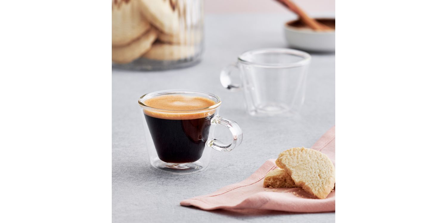 Set of 2 thermally insulated espresso glasses (75ml), hand crafted and individually mouth-blown in a stylish design. Their double walled construction means drinks stay hot for longer while the exterior remains cool to the touch.