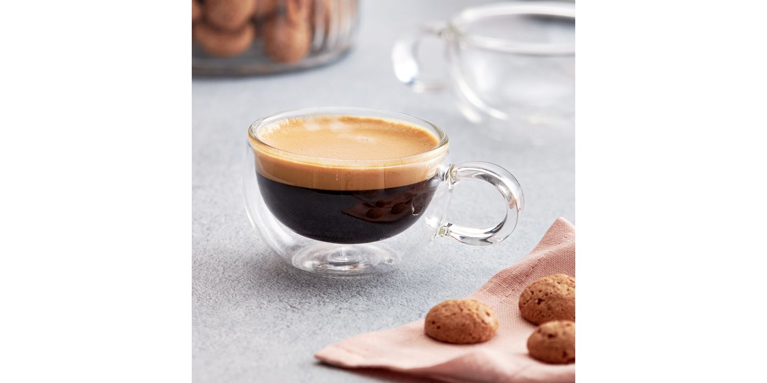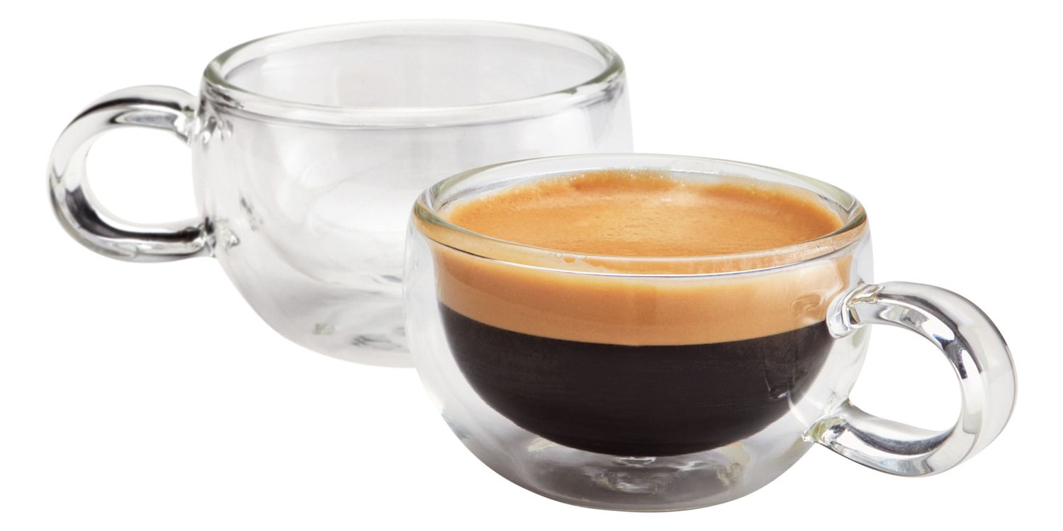Set of 2 thermally insulated Espresso glasses (75ml),  hand crafted and individually mouth-blown in a stylish design. Their double walled construction means drinks stay hot for longer while the exterior remains cool to the touch. Made from Borosilicate glass for superior strength and clarity, these glasses are both scratch resistant and dishwasher safe.