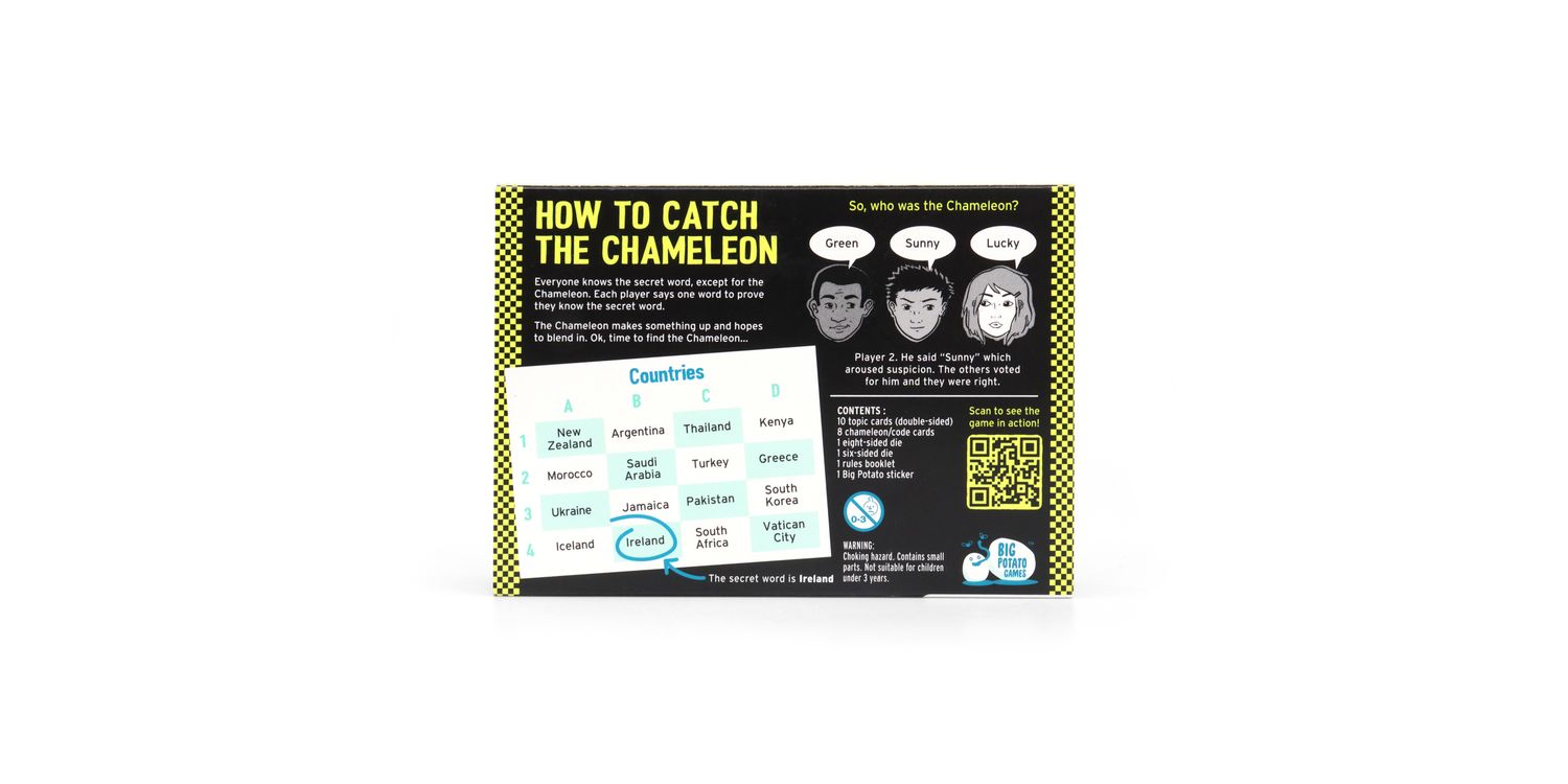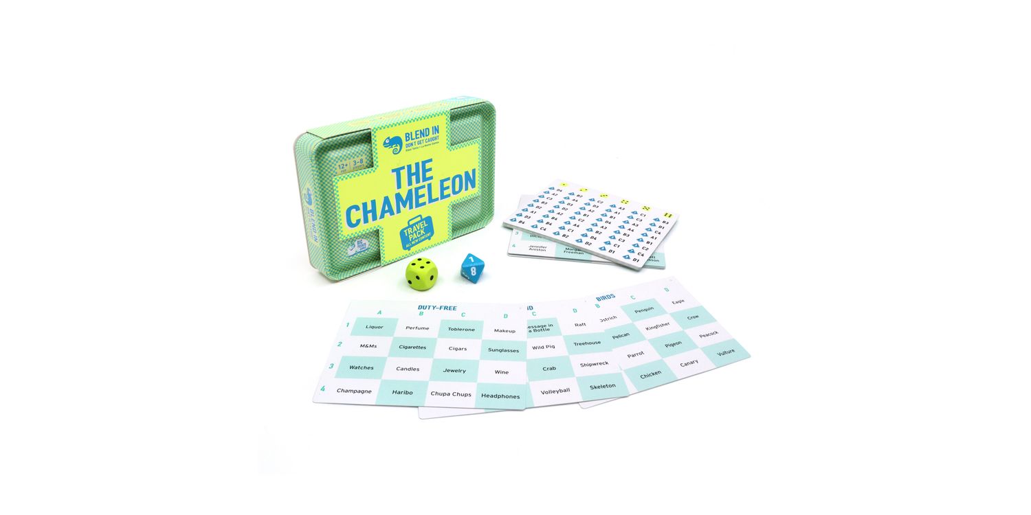 Blend in. Don’t get caught on holiday. It’s the Chameleon you all know and love but squeezed into a travel-friendly tin, with 20 brand new Topics to tackle. The rules are exactly the same – your mission is to track down the Chameleon by giving a one-word clue to prove you know the secret word. Make your clue word too vague, and other players will think you’re the Chameleon. Make it too obvious, and you’ll give away the secret word and the Chameleon will escape.