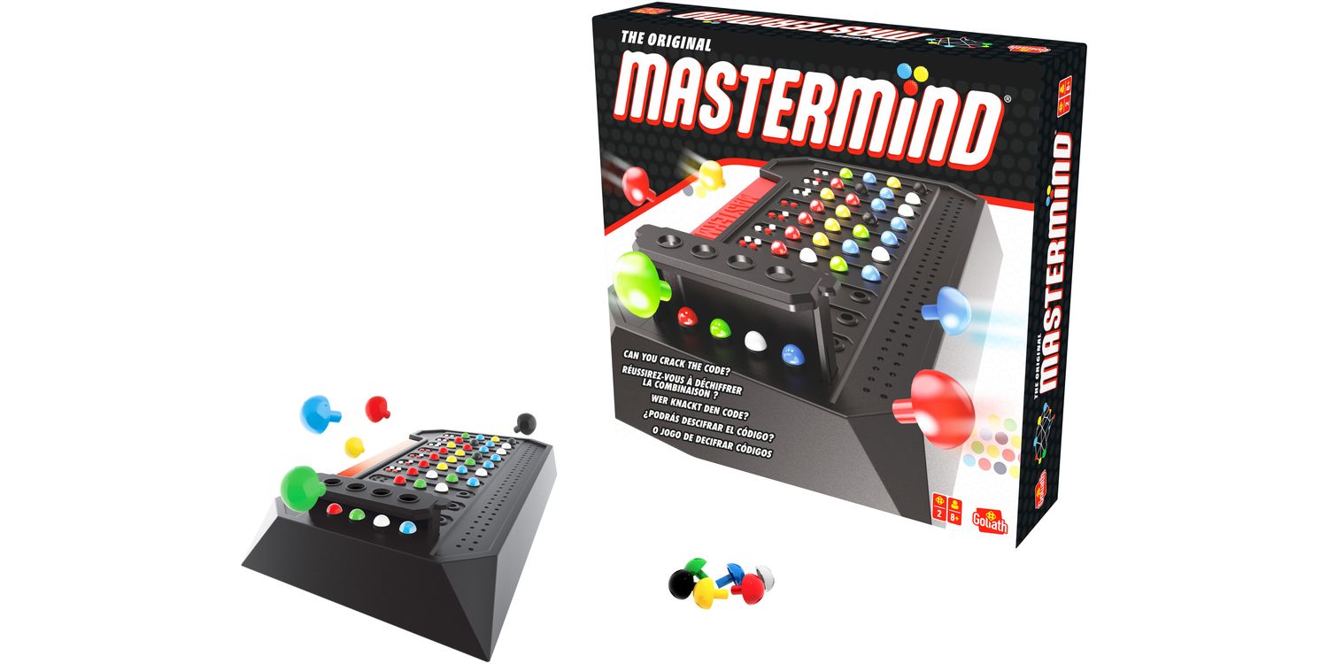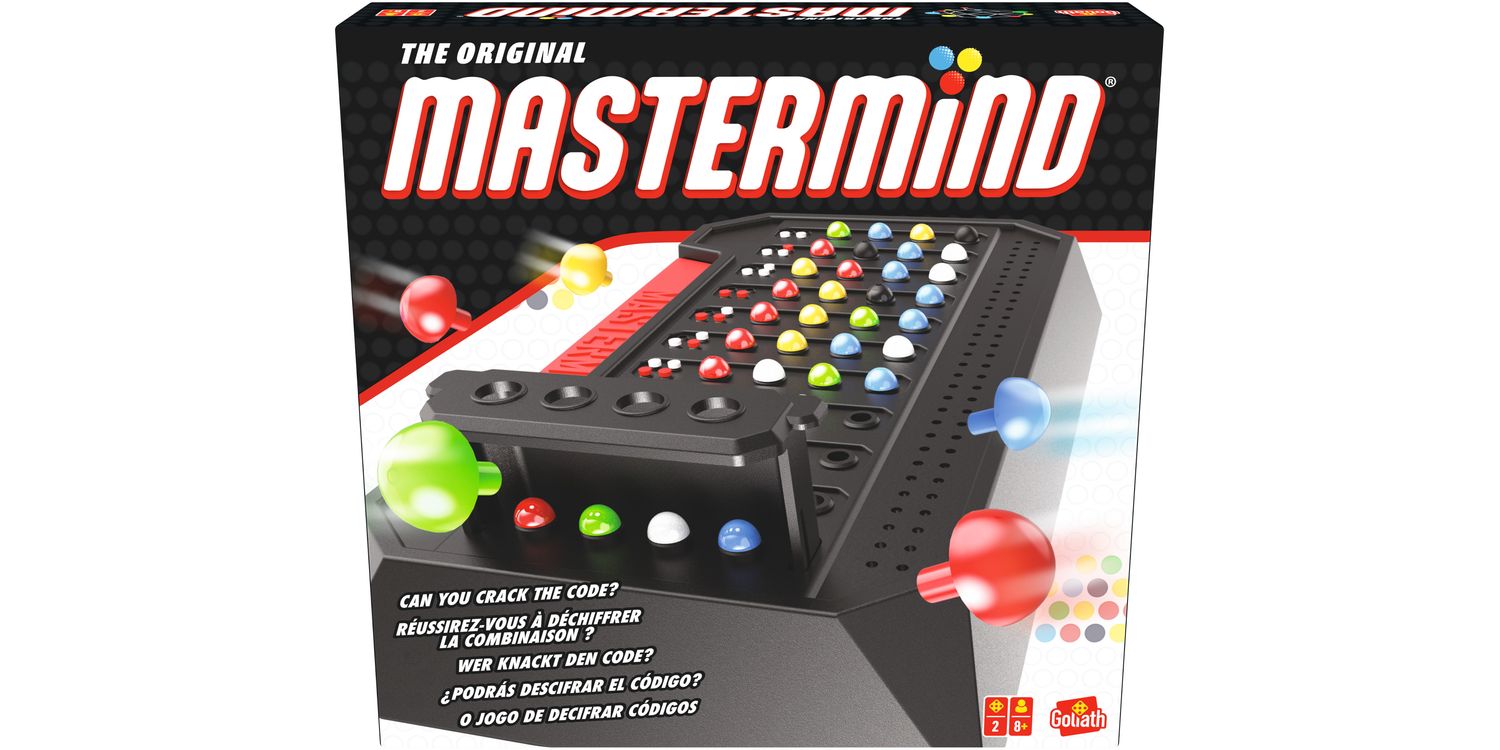Includes a game board, codemaker and codebreaker roles, coloured code pegs, and feedback pegs.