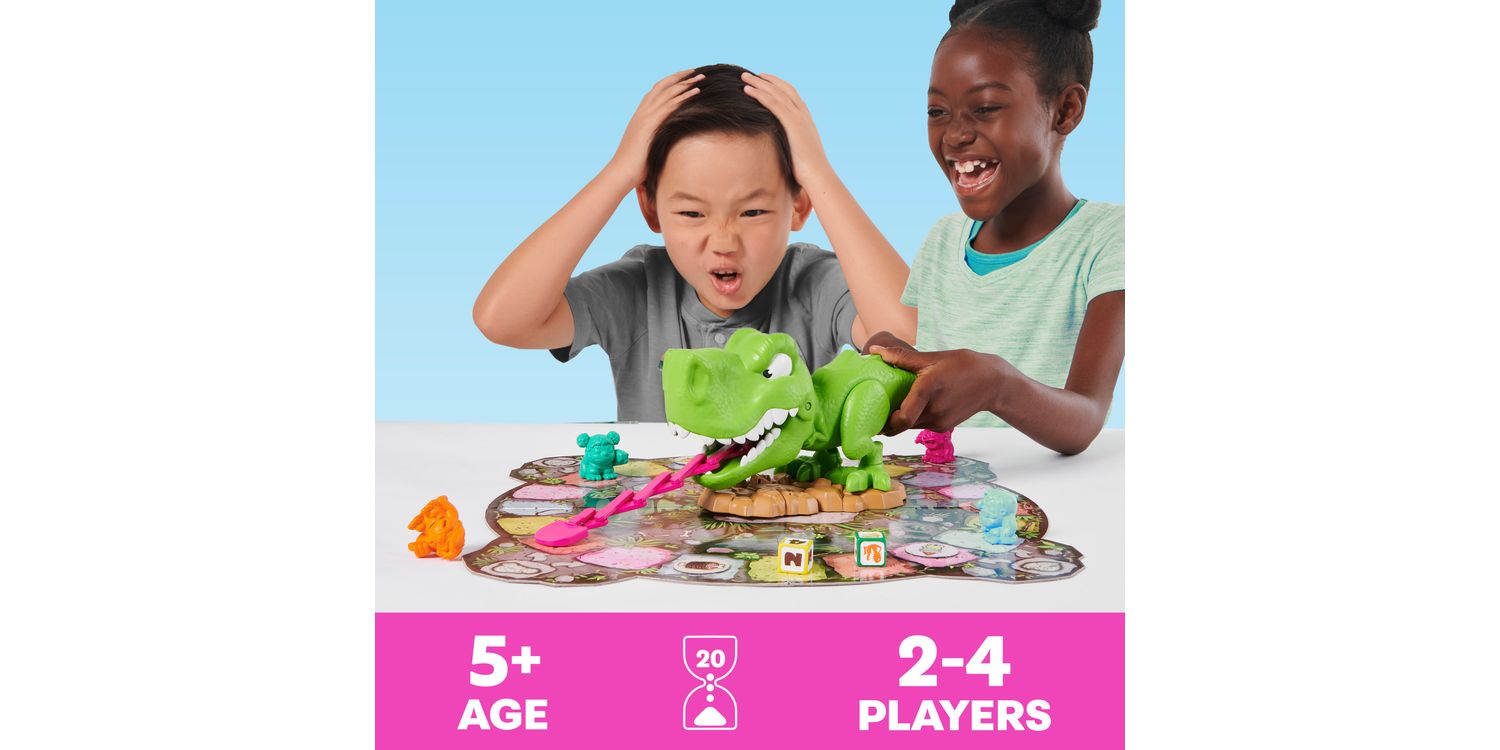 You better run from the dino tongue. Help hungry cavepeople—Ogg, Bogg, Grogg and Shirley—hunt for food while avoiding the legendary Snack-O-Saurus Rex. As a snack-loving dino, he’ll grab extra grub when you launch his super-long tongue. But be careful: you might lose some snacks when his tongue hits you. Players can aim the dino to snatch a snack or work with the T-rex by aiming at an opponent to knock them back. Spin Master brings the fun home by offering a range of toys and games, family games, family board games, kids’ toys, children’s games, toddler toys, games for adults, card games for adults, adult games, baby toys, toys for girls and board games. Collect your favourite toys, stuffed animals, fidget toys, RC cars, action figures, dolls and accessories, and more. From special birthday gifts for 4-year-old girls to toys for 6- to 8-year-old boys, find birthday gifts for boys and girls and toys for ages 5–7 by shopping our diverse catalogue of games and toys. Still hungry for more? Explore travel games, kids’ games, jigsaw puzzles for adults or card games for game night for all ages.