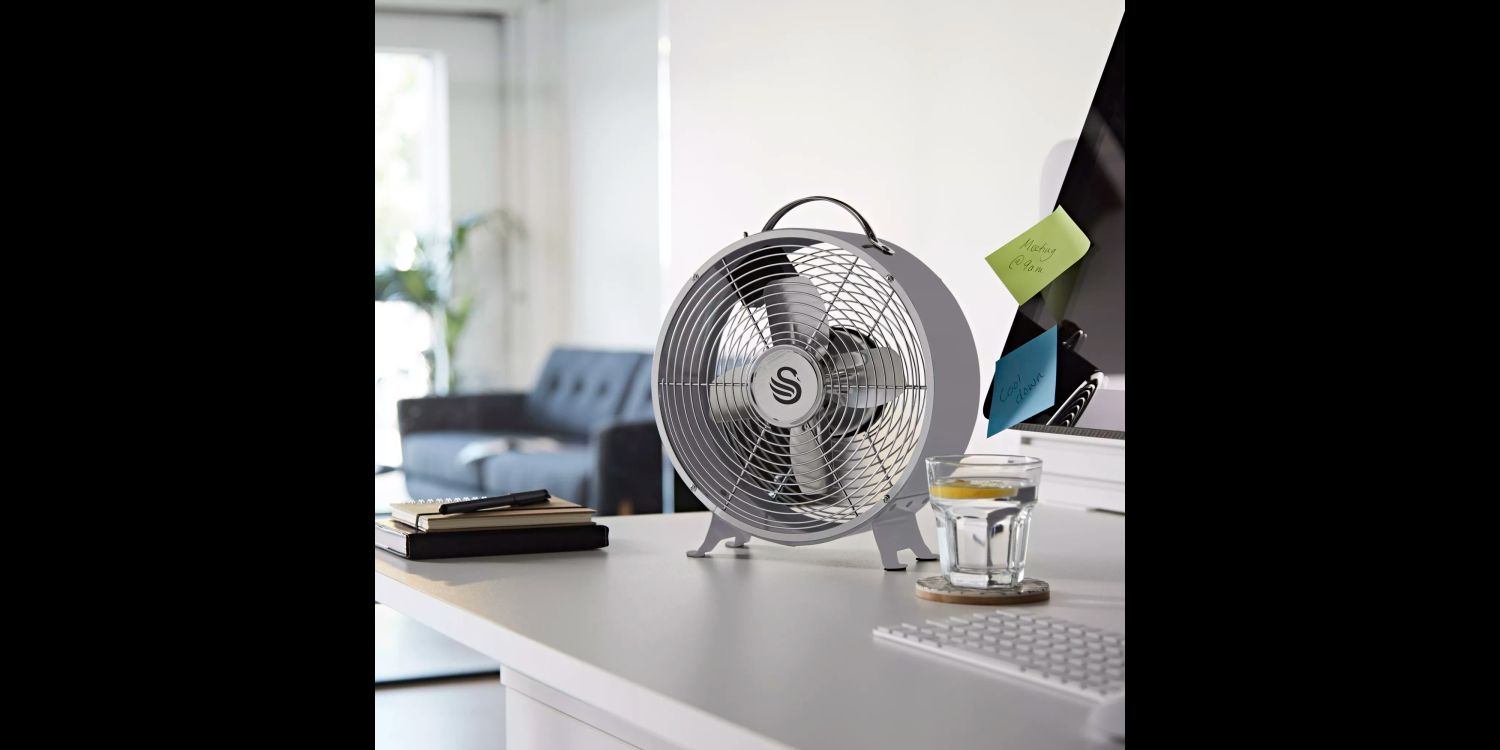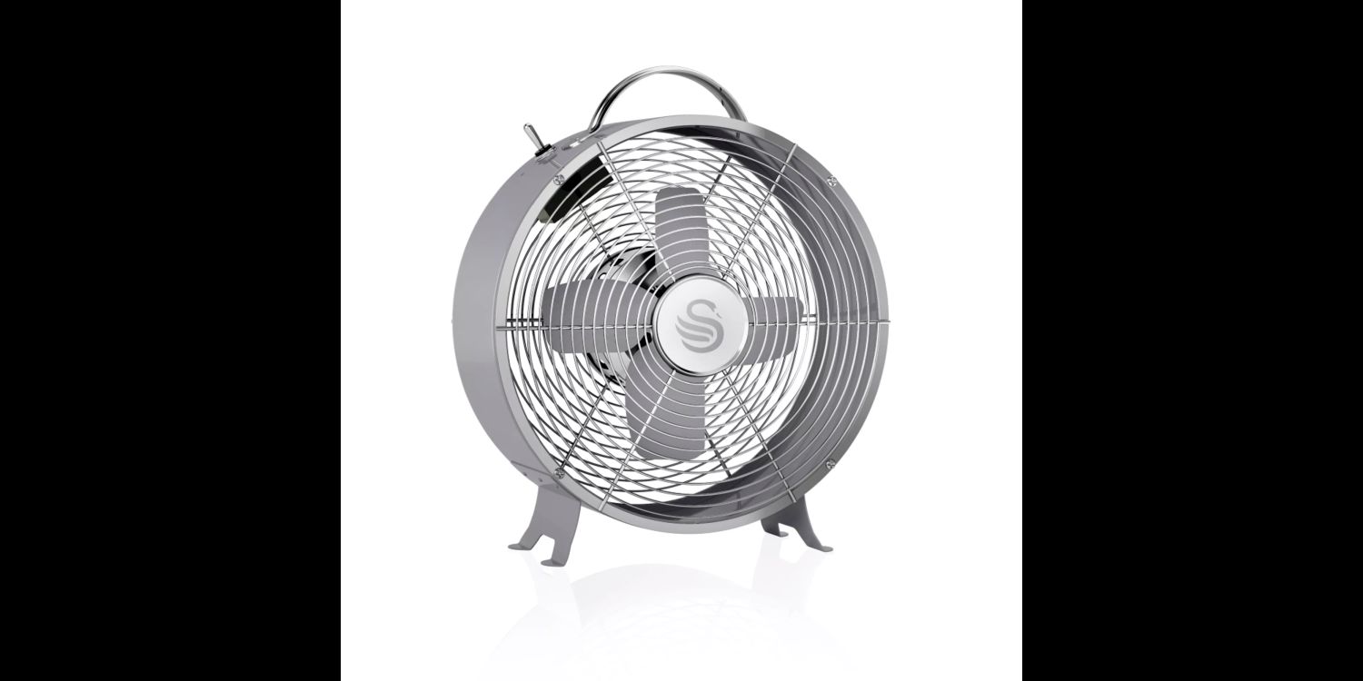 Enjoy the cool breeze from this 8-inch clock fan. Beautifully styled with a choice of striking colours from Swans stunning Retro range. The Retro styled fan is engineered with four aluminium blades and a spider grill front, round metal body and features a handle to make moving safe and easy. This fan can be positioned on furniture or the floor, to move fresh air around a room. The 25w motor will provide efficient airflow with a low noise output, making this fan perfect for home or office use
