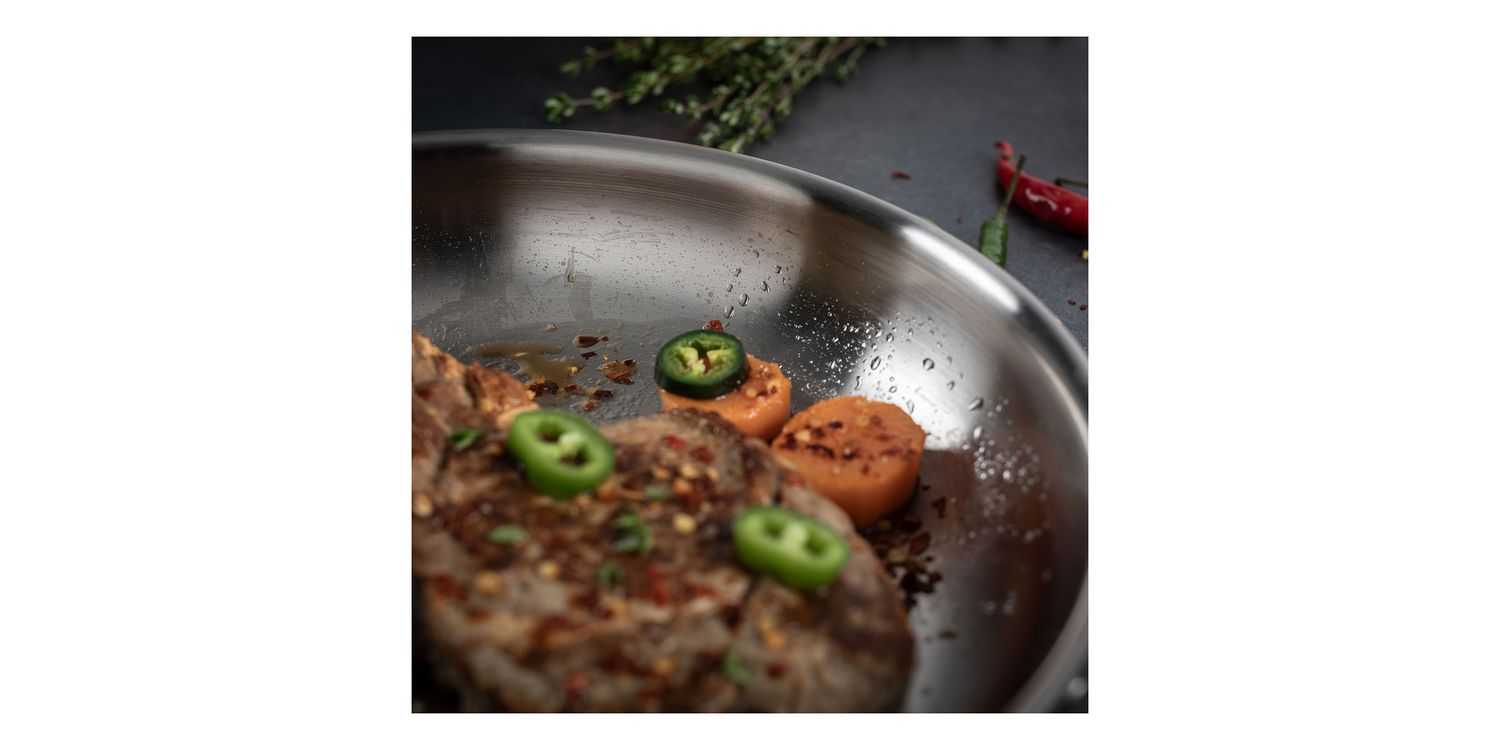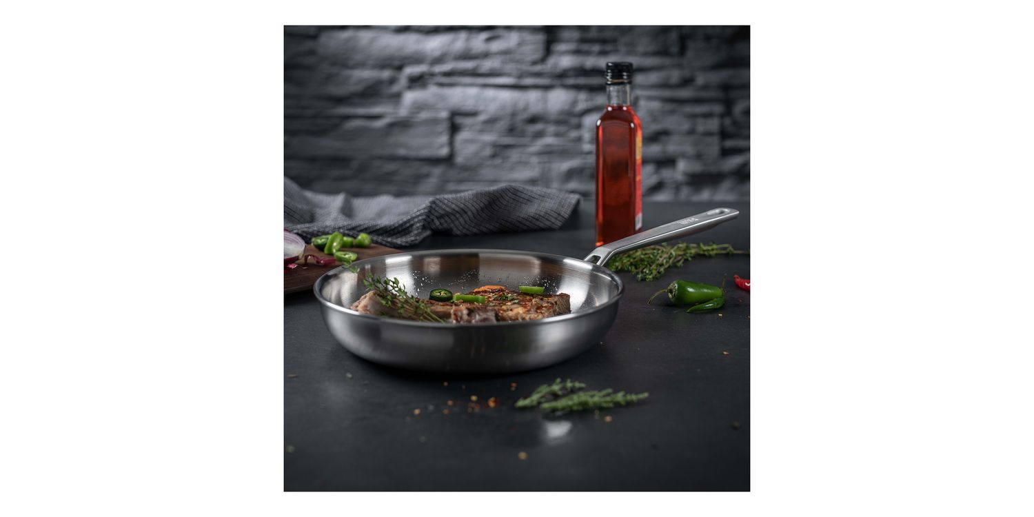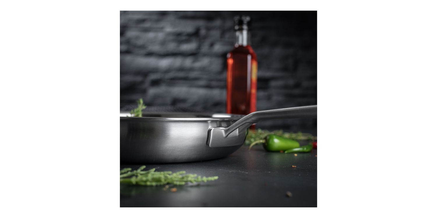 Discover perfect frying with the uncoated CULINARY FIVEPLY frying pan. Just as ideal for the aromatic searing at high temperatures of good meat as for the preparation of delicious sauce dishes.