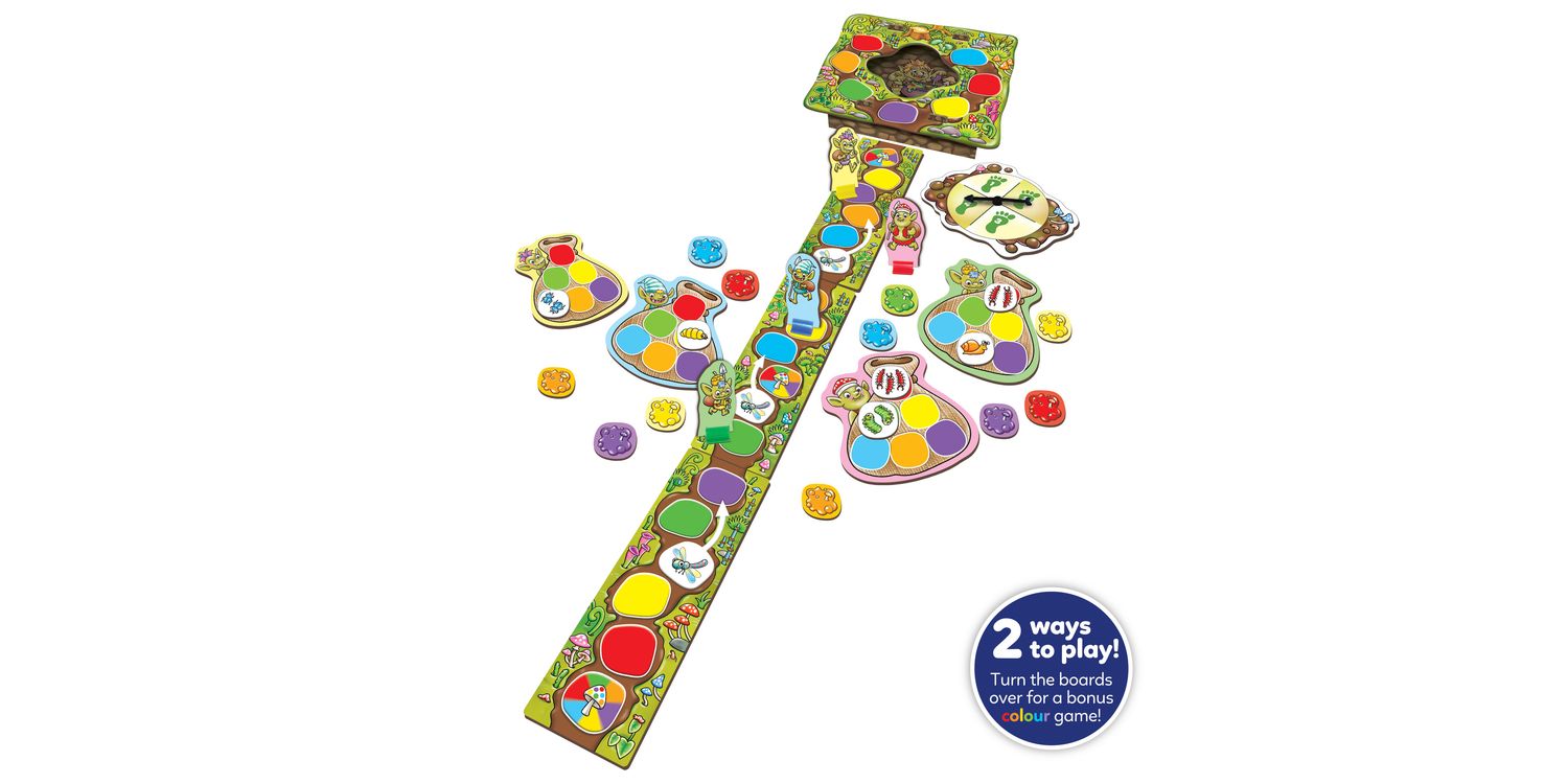 Join King Troll on his mission to make the yuckiest stew by collecting ingredients. Move your troll along the colourful path, digging in the swamp, dodging hungry frogs, swapping slime cards, and even squelching in splatberries are you go! Once you reach the centre, drop your troll into the 3D hole and count up your yucky bug ingredients. The player is the winner with the most bugs to help King Troll make his stinky stew! The fun doesn't stop there! Troll in a Hole also includes a bonus colour-matching game on the flip side of the board! Spin the spinner, move your troll, and race to fill your board with matching coloured slime cards. With two exciting ways to play, children will enjoy hours of fun! Children will also practise counting, number and colour recognition skills, while helping build confidence, turn-taking and social interaction.