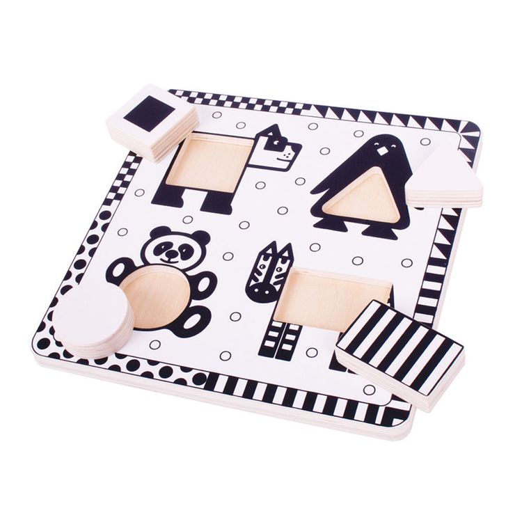 This wooden puzzle has been specifically designed in black and white, due to the fact that black and white are the easiest colours for young children to see and respond to.
