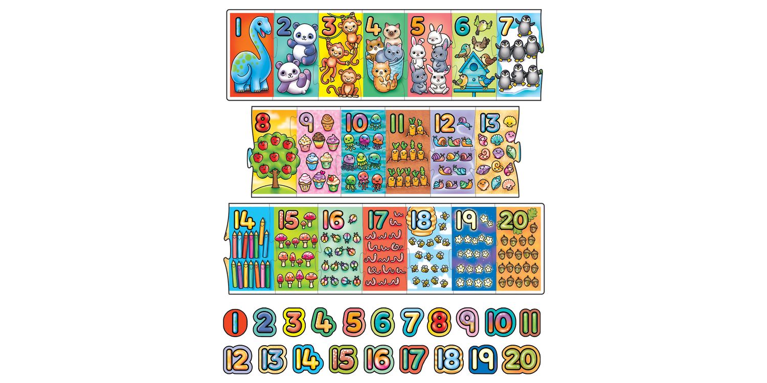 Learn numbers from 1-20 as you complete this fun, extra-long jigsaw puzzle.