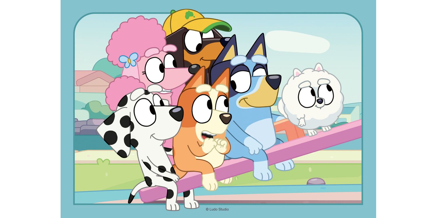 It’s playtime for Bluey, Bingo, Mackenzie, Honey, Coco, Snickers, Chloe, Winton, and Bently as they head to the playground and discover the see-saw and pose for a fun group photo to capture the memory!