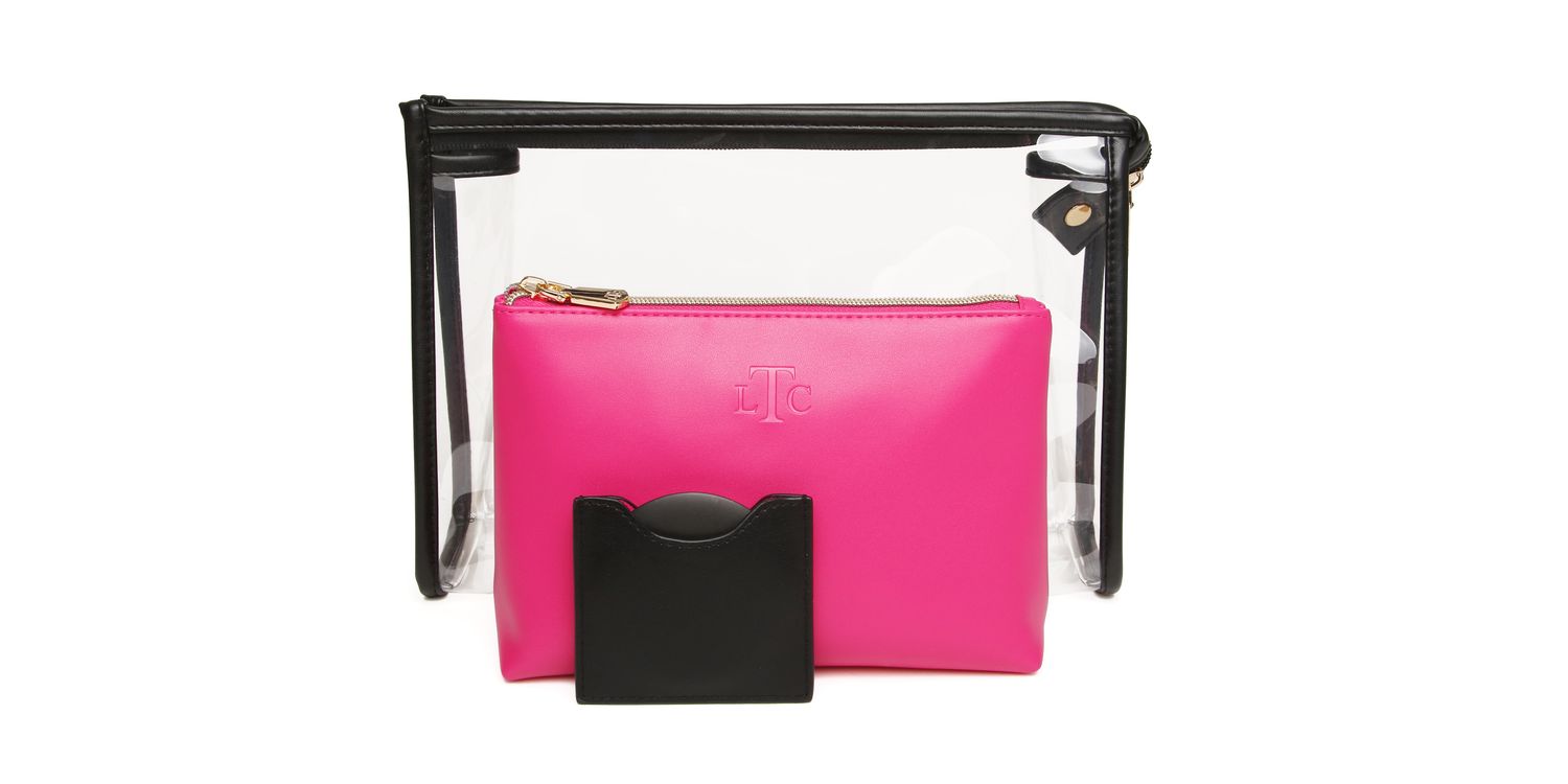 Designed for our luxury boutique range of beauty products, this amazing three-piece set includes a clear PVC makeup and travel case, a luxury textured vegan leather beauty bag, and a beautiful round compact mirror in a matching vegan leather pouch. This set is perfect for all beauty lovers who want to keep their makeup and travel essentials organised and stylish. Whether you want to gift it to someone special or treat yourself, this set will meet all your beauty and travel needs.