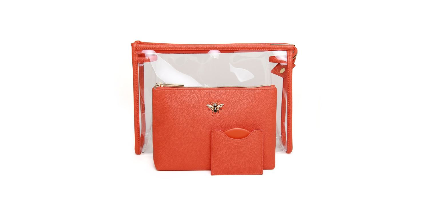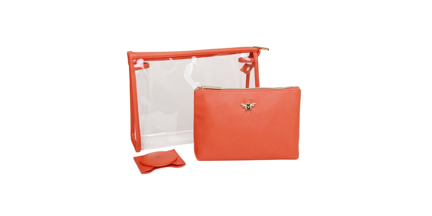 Designed for our luxury boutique range of beauty products, this amazing three-piece set includes a clear PVC makeup and travel case, a luxury textured vegan leather beauty bag, and a beautiful round compact mirror in a matching vegan leather pouch. This set is perfect for all beauty lovers who want to keep their makeup and travel essentials organised and stylish. Whether you want to gift it to someone special or treat yourself, this set will meet all your beauty and travel needs.
