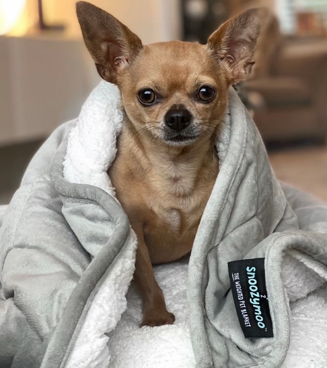 Crafted with human-grade quality in mind, the Snoozymoo weighted pet blankets provide the luxury and comfort your pet deserves. Designed to support pets who experience anxiety or restlessness, or for those who simply enjoy a touch of luxury, the gentle pressure of our blankets promotes calm, comfort, and security.