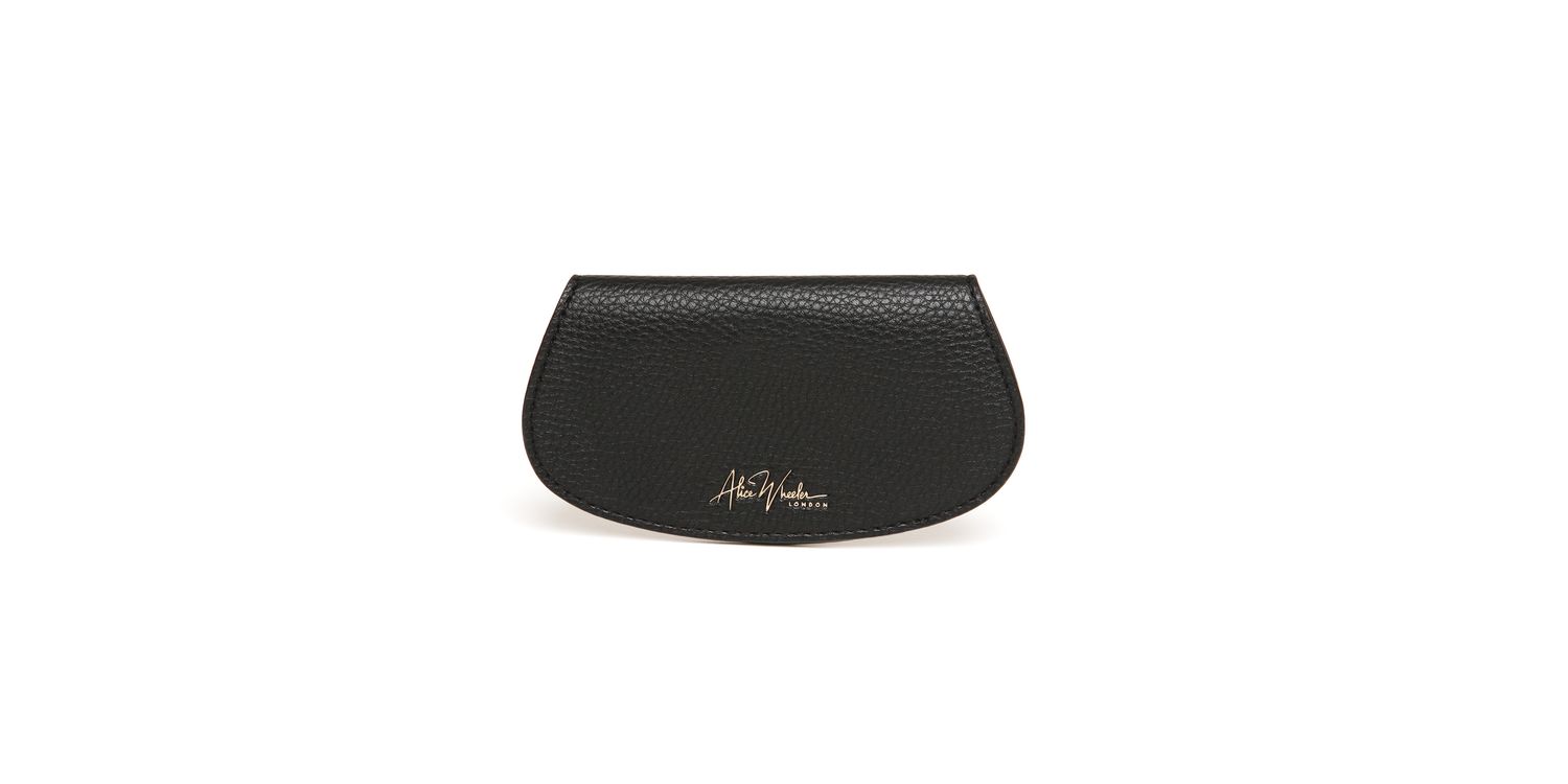 This stylish accessory features a soft, padded interior with four dedicated lens pads and a secure push-button closure. The elegant textured vegan leather exterior, adorned with the Alice Wheeler London Monogram, adds a touch of sophistication.