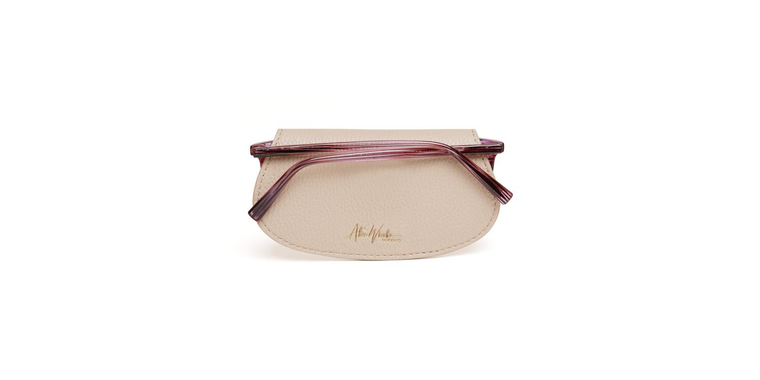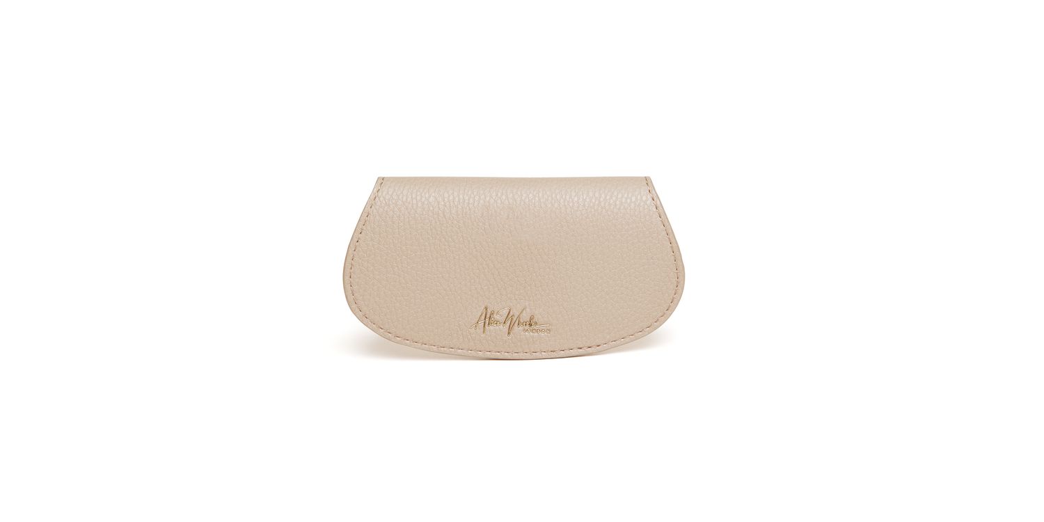 This stylish accessory features a soft, padded interior with four dedicated lens pads and a secure push-button closure. The elegant textured vegan leather exterior, adorned with the Alice Wheeler London Monogram, adds a touch of sophistication.