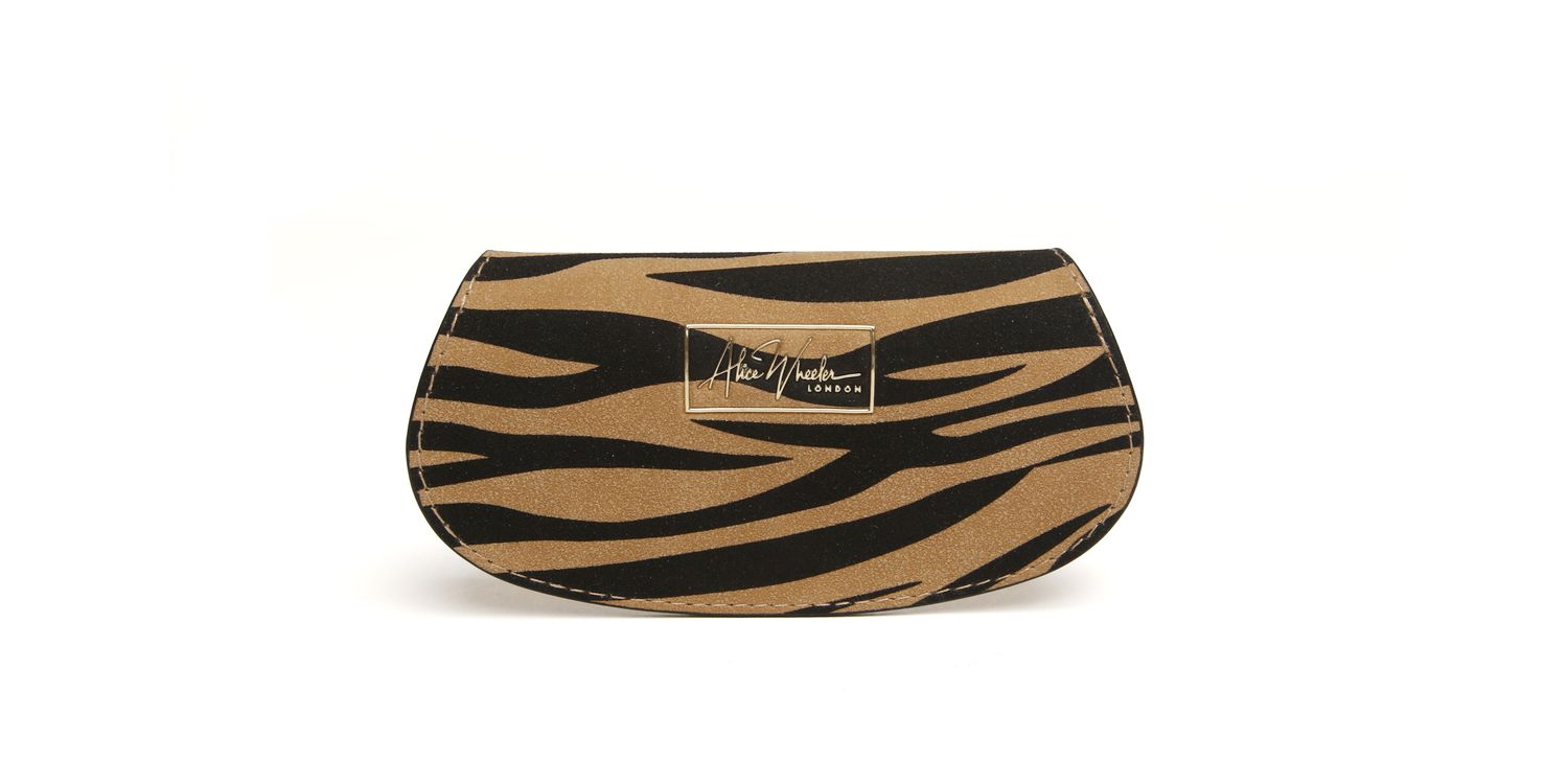 This stylish accessory features a soft, padded interior with four dedicated lens pads and a secure push-button closure. The elegant textured vegan leather exterior, adorned with the Alice Wheeler London Monogram, adds a touch of sophistication.