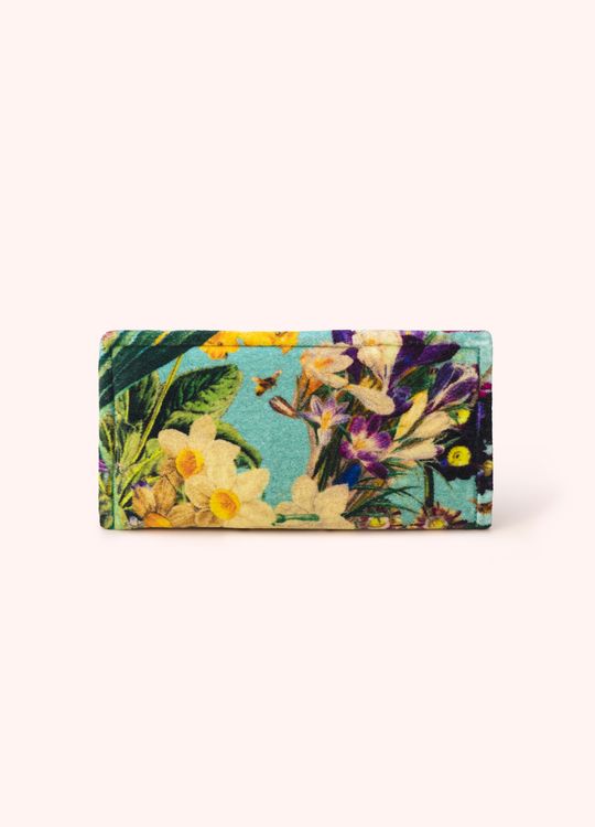 Bringing whimsical wonder to your everyday with our nostalgia filled Spring Flora motif. Daffodils intertwine with irises and other floral friends whilst the blue colourway mimics clear, bright skies. Protect your sunglasses in style whilst that sunshine feeling stays with you all year-round! This sunglasses pouch makes for the ultimate gift this season.