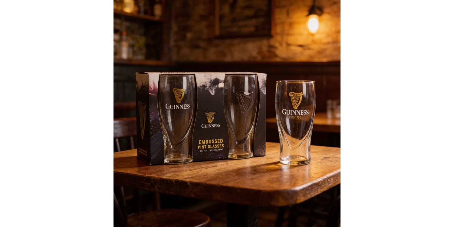 Elevate your home-bar aesthetic with this set of Guinness Embossed Pint Glasses - a sleek and sophisticated vessel designed to make every pour feel like a celebration of the perfect pint.
