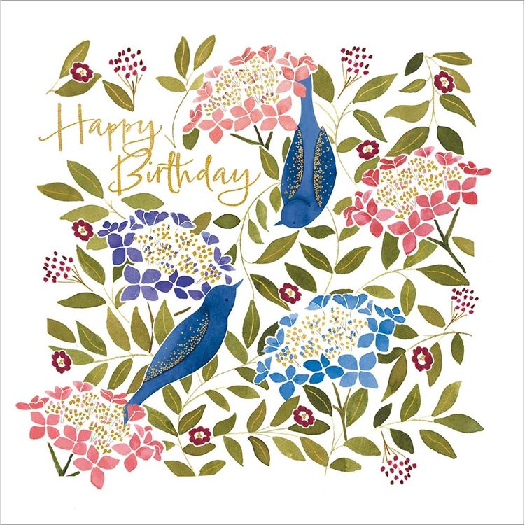 Two Blue Birds Amongst Hydrangeas And Foliage