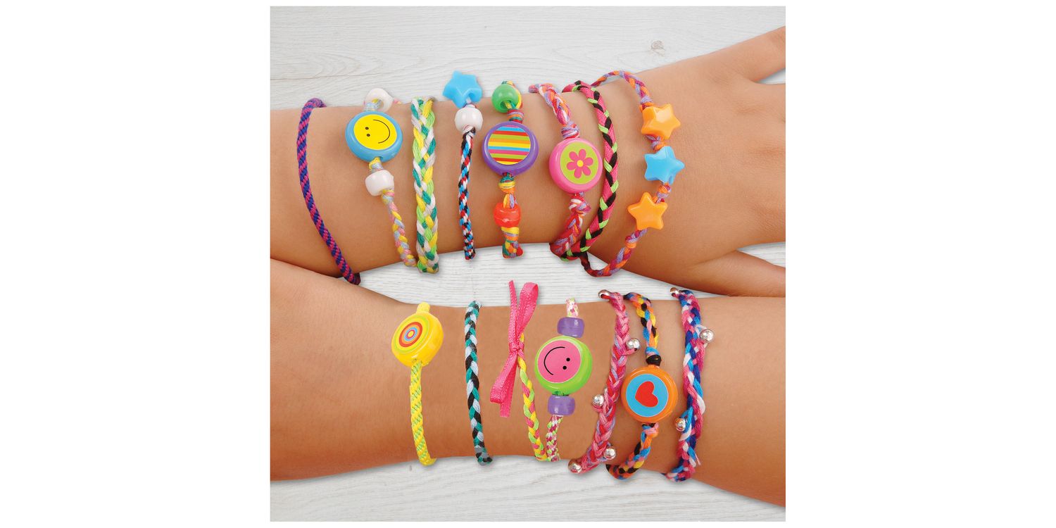 Create plaited and woven friendship bracelets with colourful threads, beads and ribbon. Make cool cord bracelets with the foam braiding wheel.