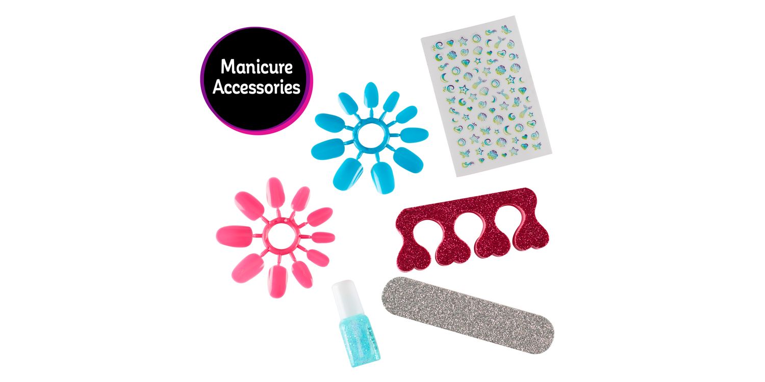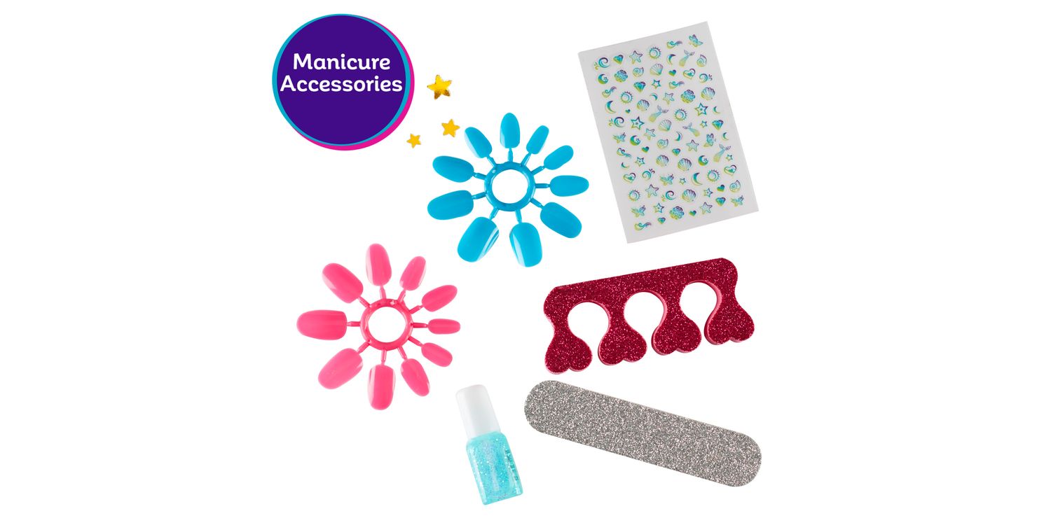 GLAM YOURSELF, GLAM YOUR WORLD With the Shimmer N Sparkle All in one beauty Makeup Purse! Now your little girl who loves beauty, can become a real makeup artist! The Shimmer and Sparkle All in one Beauty Makeup Purse is a real kids makeup playset, encouraging imaginative and creative play. GLAM YOURSELF The Shimmer and Sparkle All in One Beauty Makeup Purse includes real makeup and mirror for kids to create their own beauty style! Includes over 16 on trend and complimentary makeup colours designed to create the perfect on-the-go looks: Features 6 x eyeshadows, 4 x blushers, 4 x lip colours, 1 lip gloss, 4 x lipsticks 1 x nail polish, press on nails, nail stickers, nail file and toe separators. The set also comes with makeup brushes and applicators to help you apply your makeup like a pro! Close your purse and transport anywhere with the carry handle so you’re ready to glam at any time. The purse can be used as a storage box at home to store all your cosmetic and small beauty items inside. The set also comes with Shimmer and Sparkle branded stickers so you can glam your backpack as well as yourself! GLAM YOUR WORLD All Shimmer N Sparkle InstaGlam dolls and beauty sets are compact and portable, they can be taken anywhere for glam on the go! They encourage creative play; kids can swap their style and share beauty tips with friends and family. Perfect for birthday and Christmas gifting, or simply carry them to celebrations, parties, and sleepovers for kids who love to role play and apply on trend, easy to use makeup. With Shimmer N Sparkle InstaGlam have fun whilst perfecting your beauty skills, create and share your look and become a real makeup artist! HIGH QUALITY MAKEUP All Shimmer N Sparkle InstaGlam toys and on-the-go beauty sets are made with safe and high-quality materials. This cosmetic beauty toy set will not stain, is easily washable, non-toxic and is suitable for kids 8 years and up