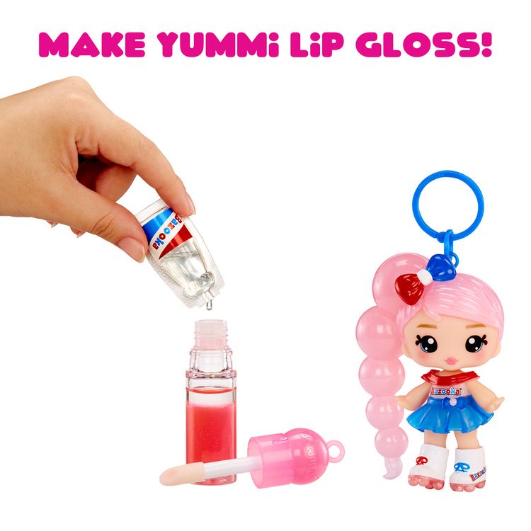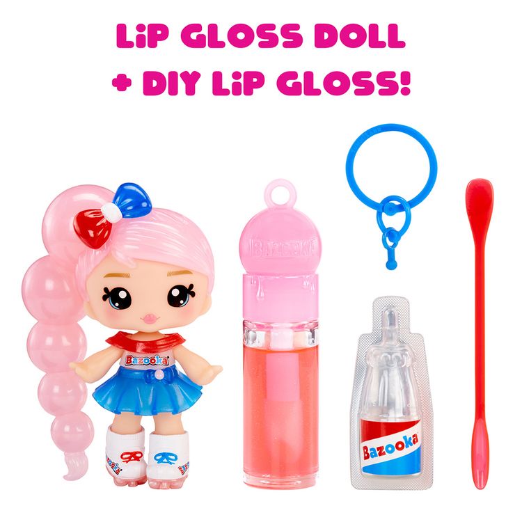 Introducing six all-new Yummiland dolls inspired by some of the most iconic and beloved candies. Each doll includes your own DIY lip gloss kit with a removable keychain, so you can take your doll and gloss on-the-go. Meet Jojo Bubblegum™, the bubble-blowing bestie inspired by the iconic Bazooka bubble gum! With her retro style, Jojo brings sweet nostalgia and fun to your Yummiland collection. Create your own bubblegum-scented lip gloss and take it on-the-go with the included keychain!