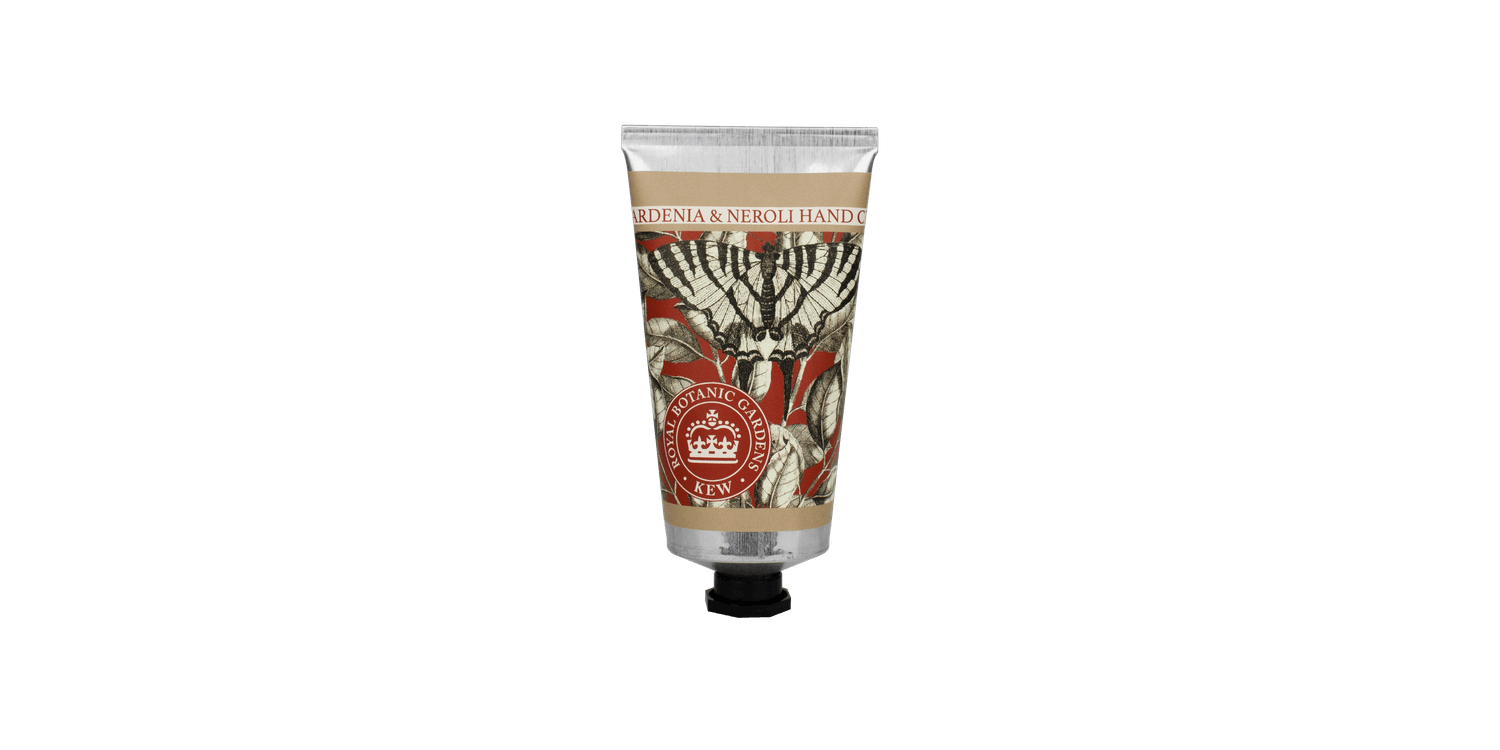 Experience luxury self-care with this Kew Gardens Gardenia and Neroli Hand Cream. Beautifully fragranced and expertly crafted from quality ingredients, this moisturising hand cream is enriched with aloe vera and shea butter. Its non-greasy formula absorbs easily, leaving your skin scented and nourished. Presented in aluminium tubes with fully recyclable packaging adorned with charming illustrations, our eco-friendly creams make the perfect gift or an ideal for on-the-go solution to keep hands hydrated.