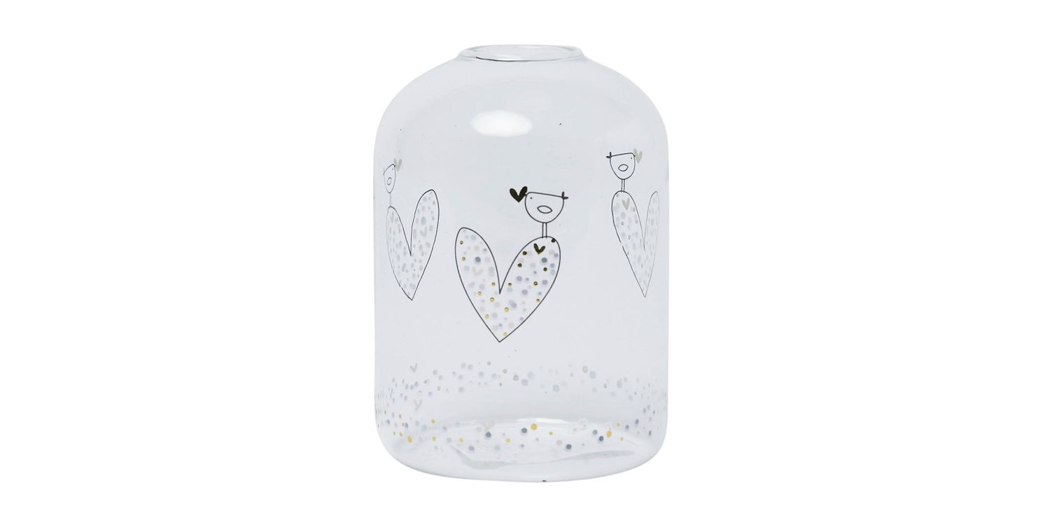 Belly Button Designs - Borosilicate Glass Vase - Confetti Heart & Bird