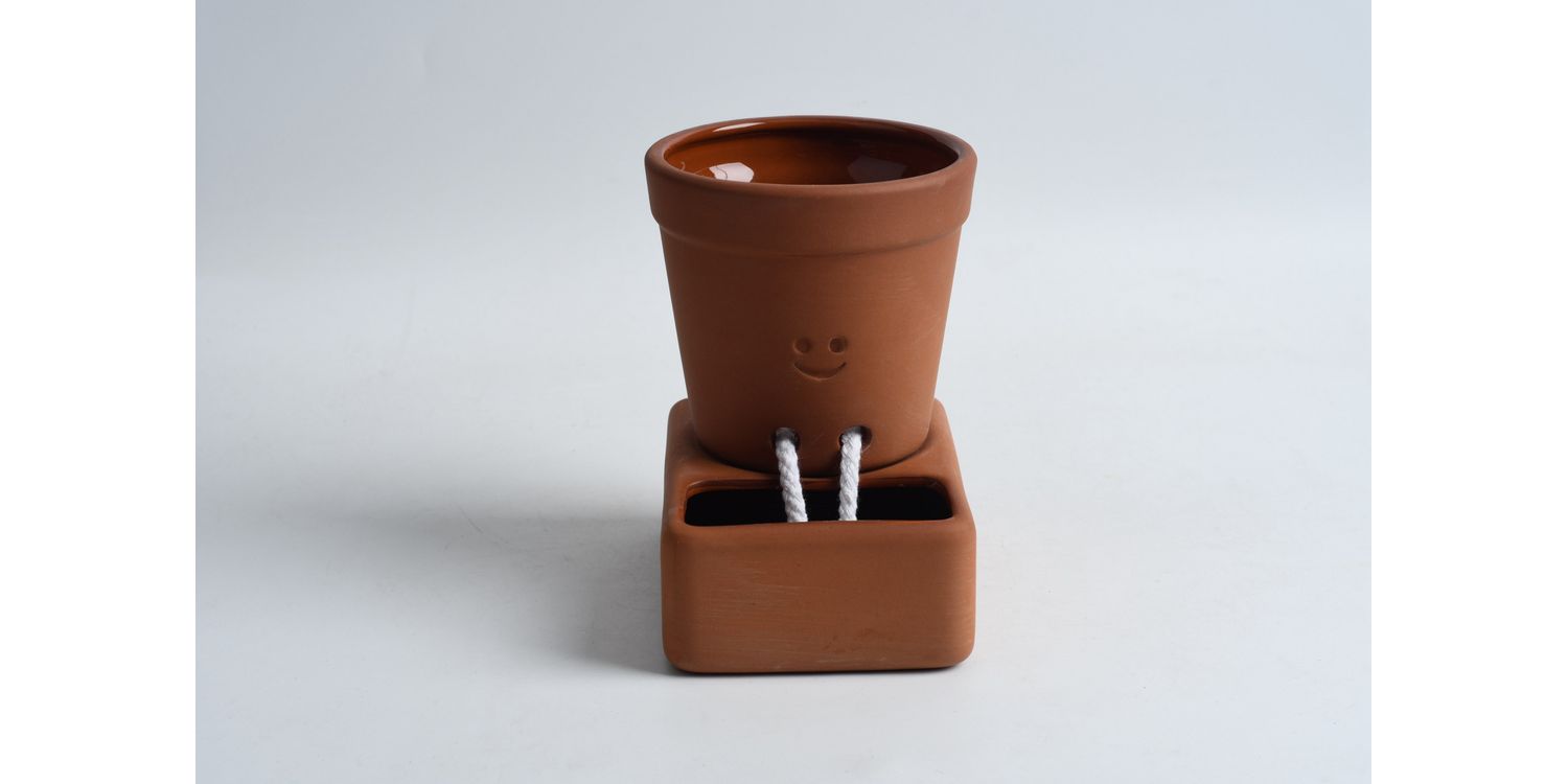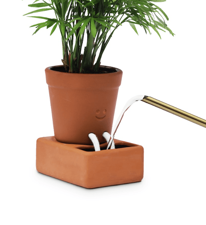 Fill the ceramic foot spa with water then dip the happy pot’s little feet into the water. His cotton legs slowly draw up the perfect amount of water keeping the soil from drying out, and keeping your plants and herbs happily watered for up to 2 months. The perfect size for shop-bought potted herbs and small plants.