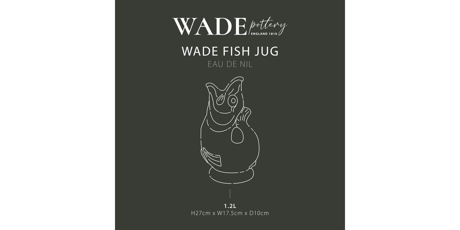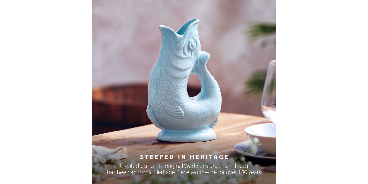Add a touch of UK ceramic heritage to your home with this 1.2L Fish Jug from Wade. Created using the original iconic Wade design that continues to delight homes across the world for over 150 years. This fish jug is the perfect statement piece for any home. Handcrafted in Stoke-on-Trent, the heart of the pottery industry using English Earthenware, it showcases and celebrates exceptional craftmanship. The 1.2L capacity means you can use it as a water jug or wine carafe at family mealtimes or social gatherings, while also being the ideal ornament, vase or table centrepiece, it just oozes style. The unique gurgling sound has long been a hallmark for the jug and it will produce the sound when pouring the jug if it is at least three quarters full. Formed in the shape of a fish, the mouth perfectly lines up to create an easy pour spout, whilst the tail curves up to create an ergonomic handle with a comfortable grip. It is the perfect gift for any heritage brand lover and would be great for weddings, birthdays and housewarming parties. Handwash is recommended to maintain the glaze and to keep the jug looking its best.