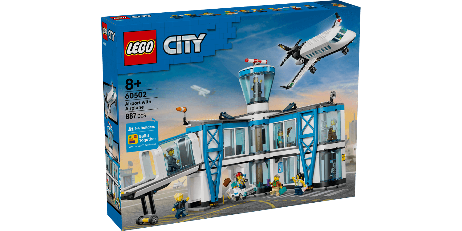 Playtime will take flight with the LEGO® City Airport with Airplane (60502) building kit for kids aged 8 and over.
