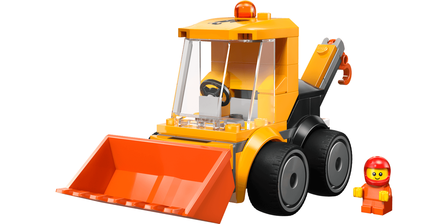 This easy-to-build truck toy offers young builders a fun introduction to the world of LEGO City. Details include rubber tyres, driver’s cab, front loader bucket and a backhoe fitted with a hook. The building set includes a LEGO construction worker junior minifigure that fits perfectly in the driver’s cab for hours of pretend play. Kids can also enjoy intuitive building with the LEGO Builder app, zooming and rotating with 3D instructions, while saving and tracking progress – all from the app. Part of the LEGO City Rides collection, this excavator toy loader makes a fun kids' party bag filler and a great birthday gift for 5+ year old boys and girls who love construction site vehicles and imaginative play. Combine it with other LEGO City sets (sold separately) for more fun.