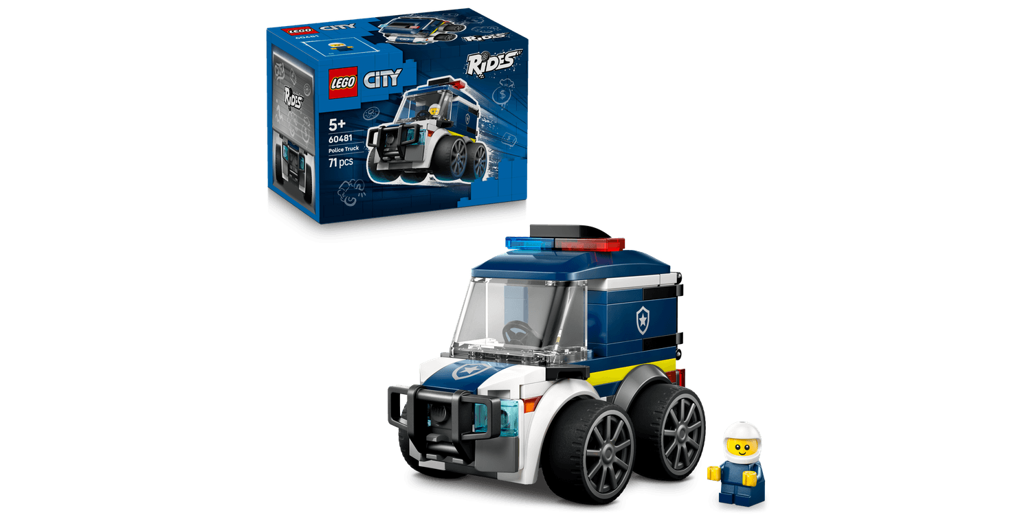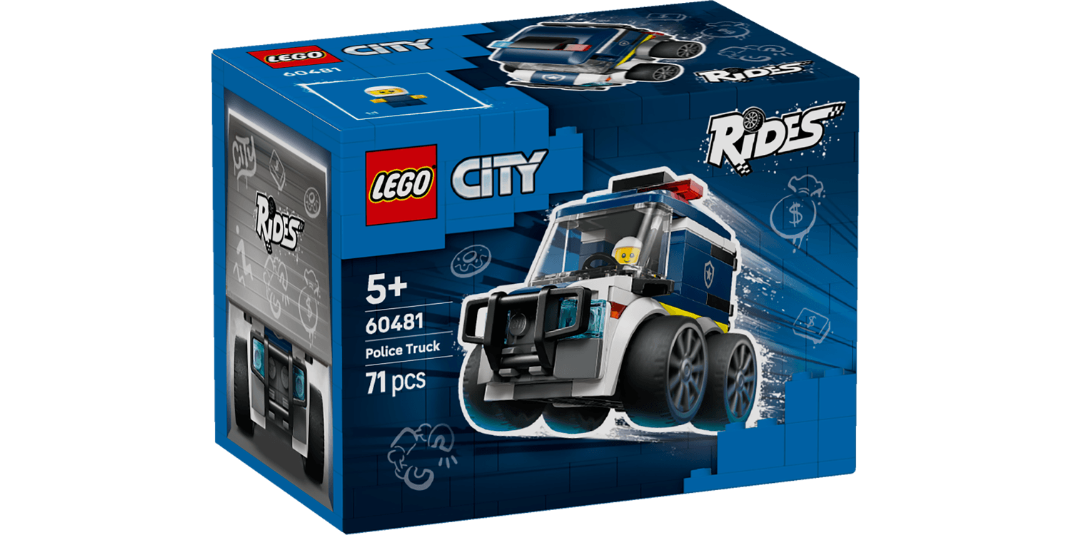 Unleash action-packed police adventures with the LEGO City Rides – Police Truck toy for 5+ year old boys and girls (60481).